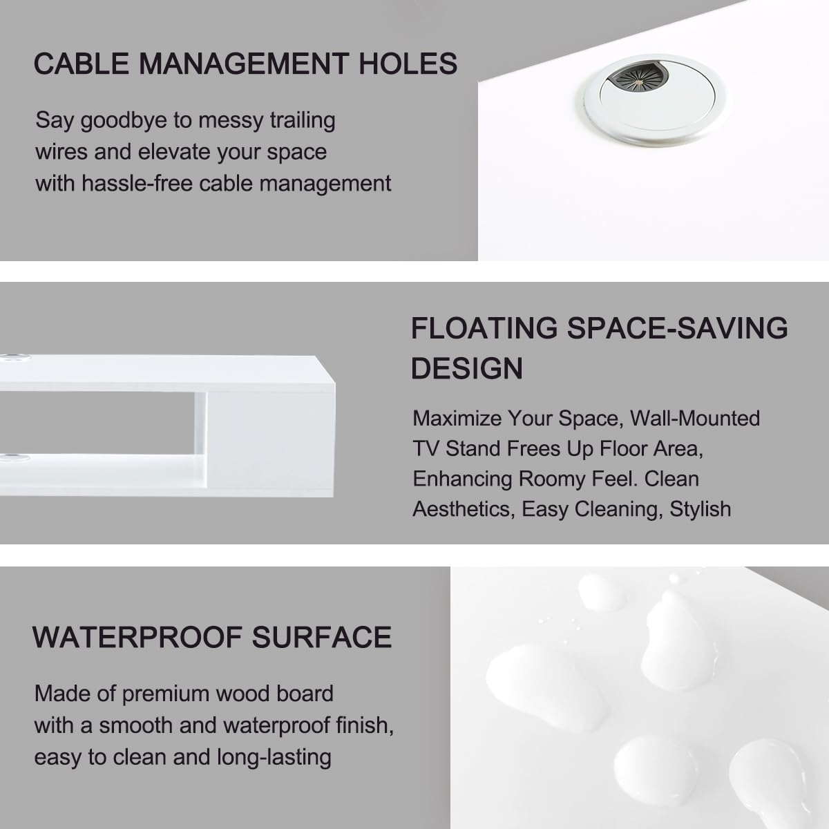 - 【Wire Management】Our wall mounted entertainment center media console have cable holes designed for hiding messy cables. Keep your stuff neatly organized, make living space more beautiful and comfortable.