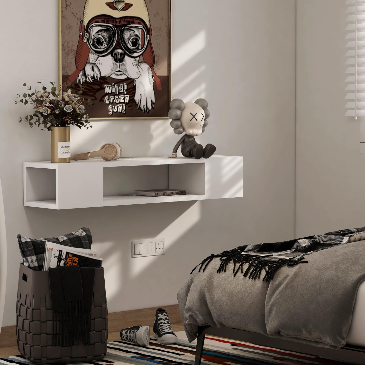 GHC Floating TV Stand, Wall Mounted Entertainment Center and Cabinet Shelf, Media Console for DVD Player, Space-Saving Under TV Shelf for Bedroom, Living Room (White)