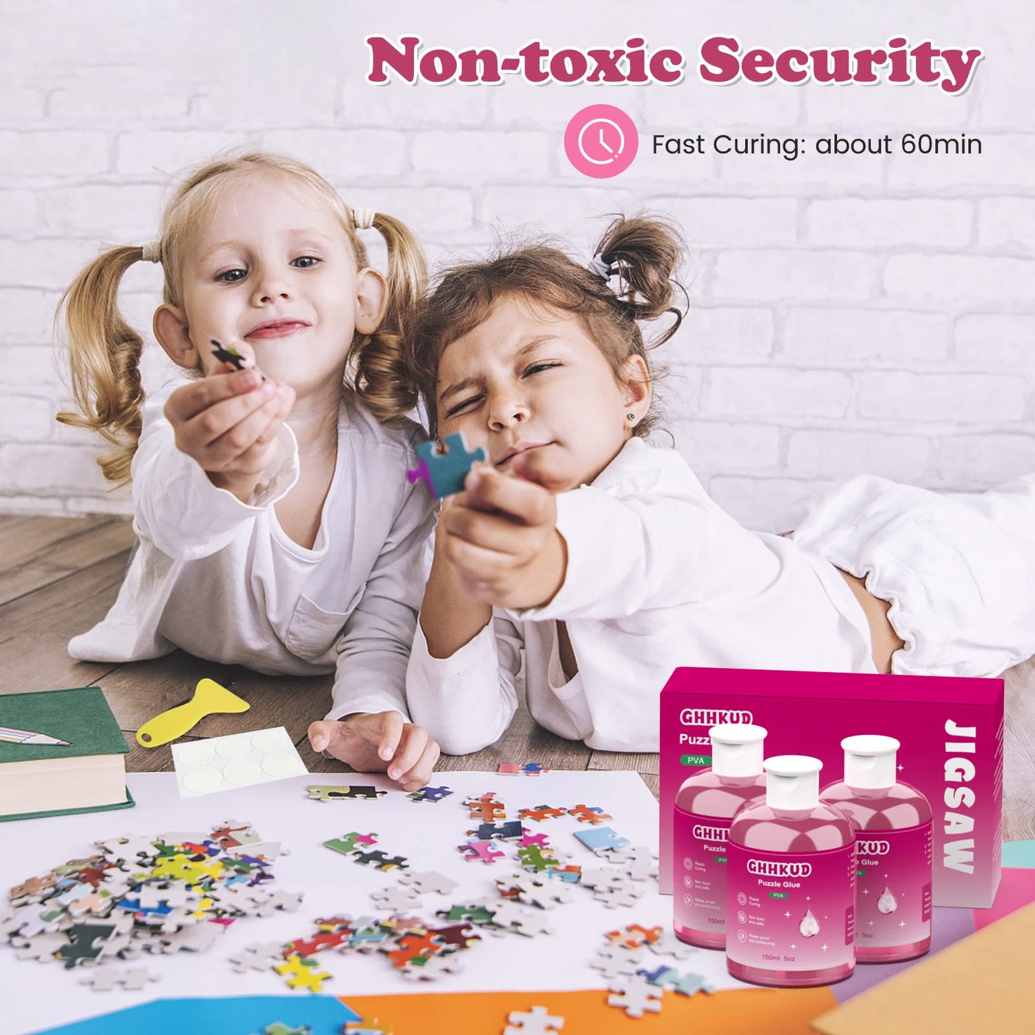 - 💟【PERFECT DECORATION】Use GHHKUD's puzzle glue to fix the puzzle and hang it up as a stylish decoration. Note: Do not eat this product, keep this product out of reach of children under 3 years old; Please tighten the cap after use, it is best to pad some paper at the bottom when applying the puzzle. If any question about the product, please feel free to contact us. Package included: 3*150ml glue, 1*Scraper,6 * Circular double-sided adhesive tape.