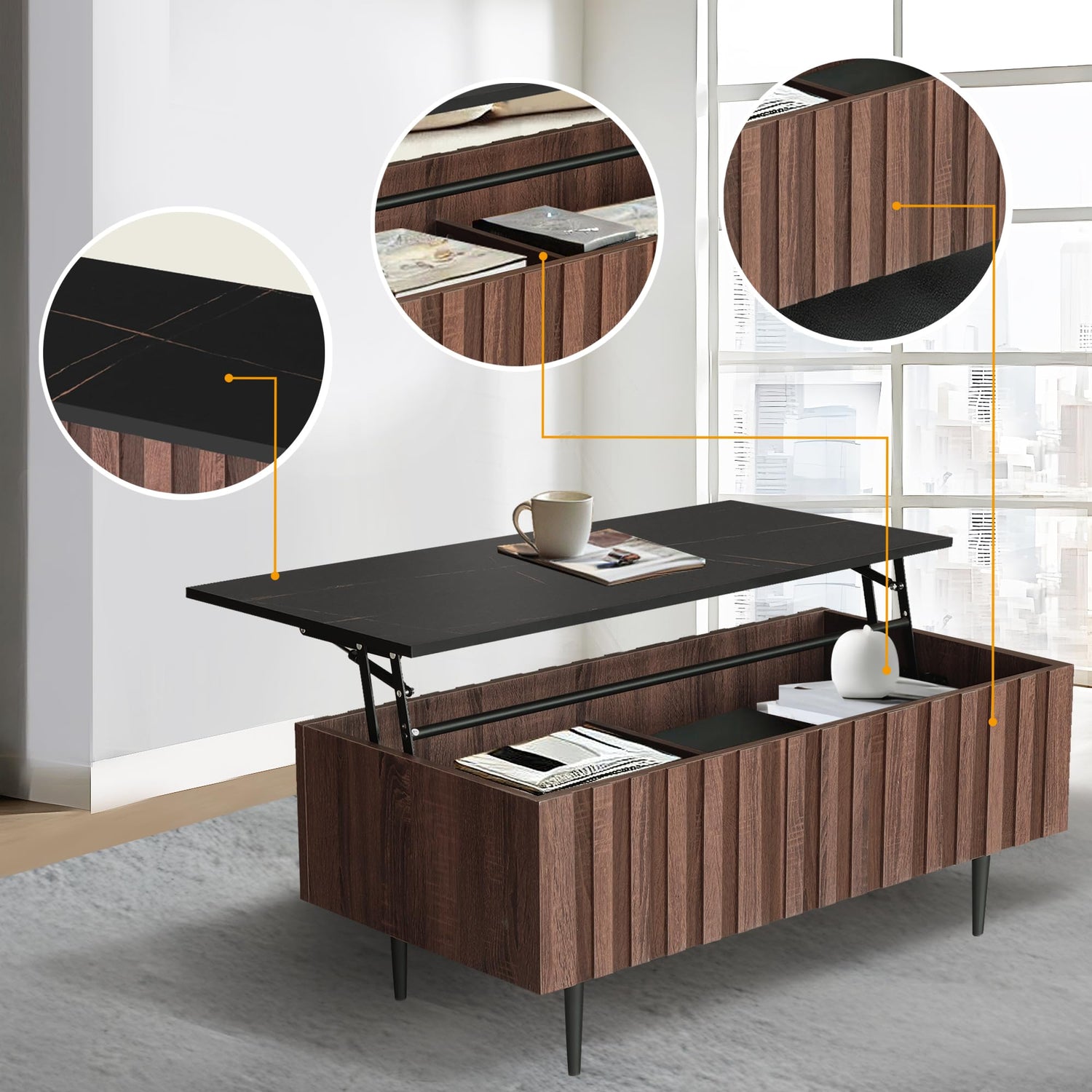 GIA Home Furniture Series 40" Lift-Top Coffee Table with Hidden Storage Compartments, Fluted Coffee Center Table for Living Room, Home Office, Black Marble Walnut