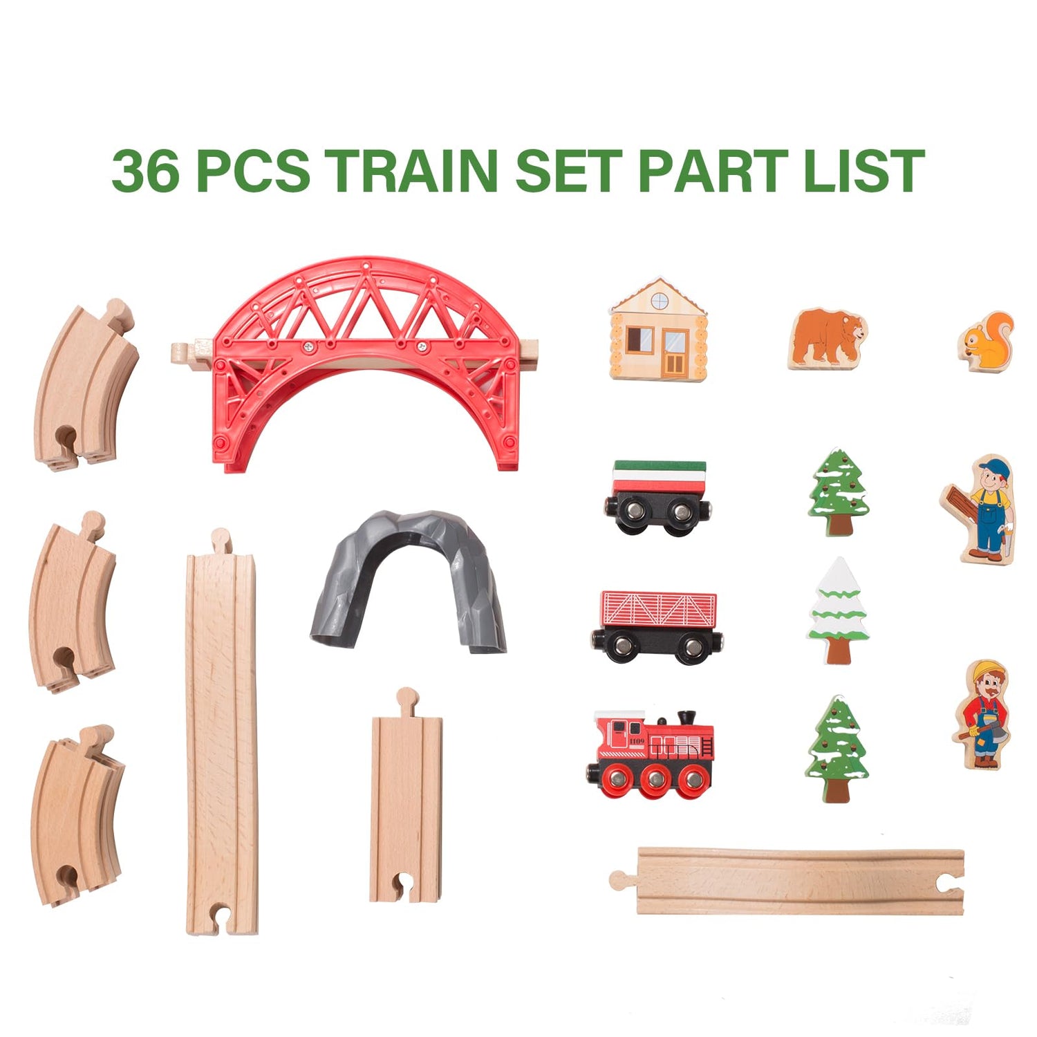 Giant bean Forest Theme Wooden Train Set for Toddler- 36PCS Expandable & Changeable Wooden Train Tracks Toy, for Kids Boys and Girls 3-7, Fits for