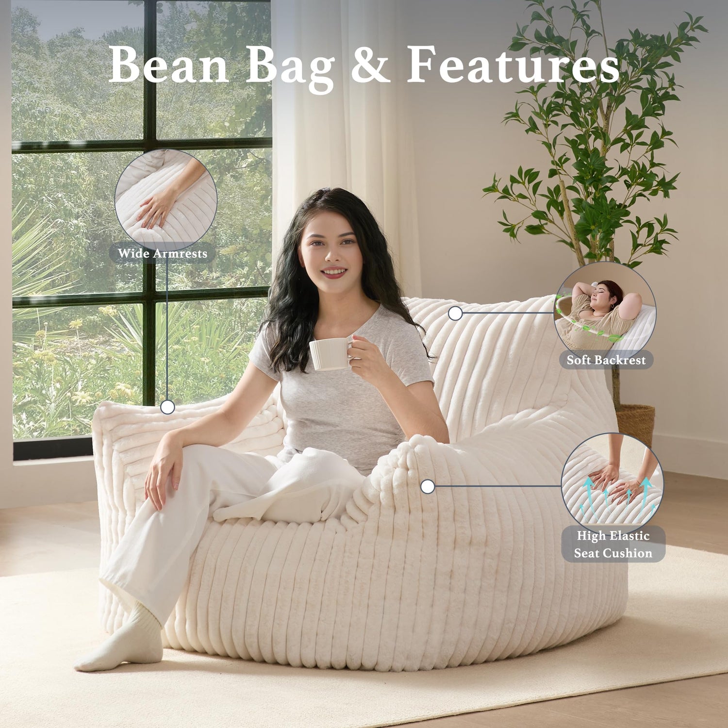 Giant Plush Bean Bag Chair for Adults with Armrests - Oversized Comfy Beige Beanbag Lounge Lazy Floor Sofa Accent Chair for Living Room, Bedroom & Dorm, Cozy Fluffy Single Cloud Mini Couch