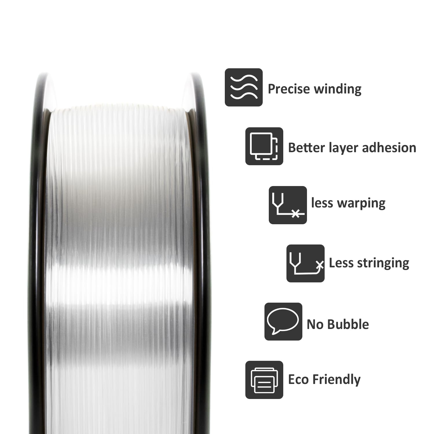 GIANTARM Clear PLA Filament, 1.75mm Transparent PLA 1kg Spool (2.2lbs), 3D Printer Filament with Vacuum Packaging