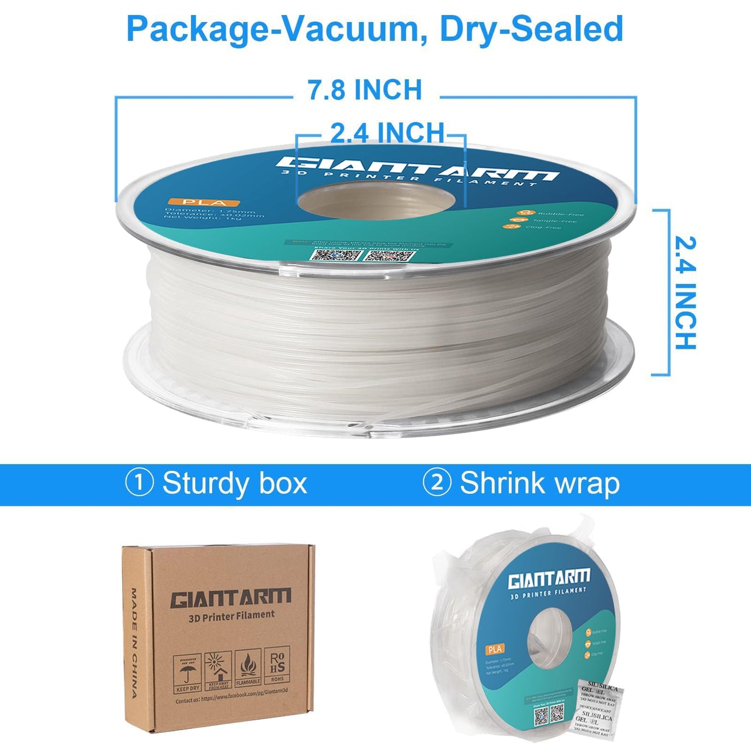 - 【Vacuum packaging and after-sales】Giantarm filaments are vacuum packed with desiccant to keep moisture low and prevent nozzle clogging. If you have any product quality problems, please feel free to contact us, we hope to solve your problem within 24 hours.