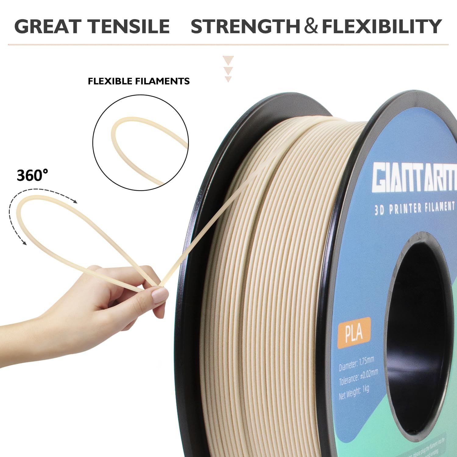 - 【1.75mm PLA Filament】--GIANTARM PLA Burlywood filaments to be strict tolerances, 1.75mm Diameter, dimensional accuracy + / - 0.03 mm without any exaggeration, 1 kg spool (2.2lbs), consistent colors without traces of other color.
