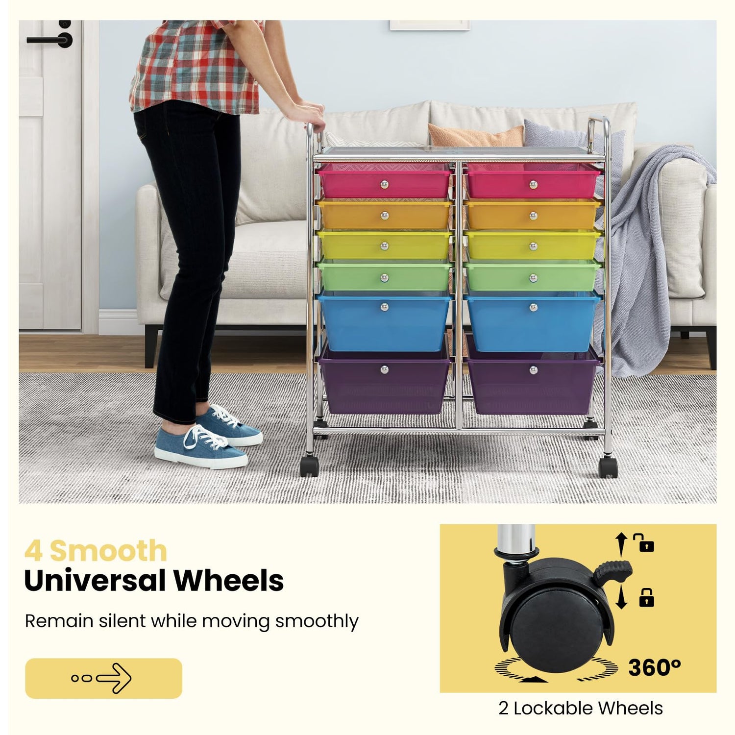 Giantex 12 Drawer Rolling Storage Cart Tools Scrapbook Paper Office School Organizer (Multi-Color)