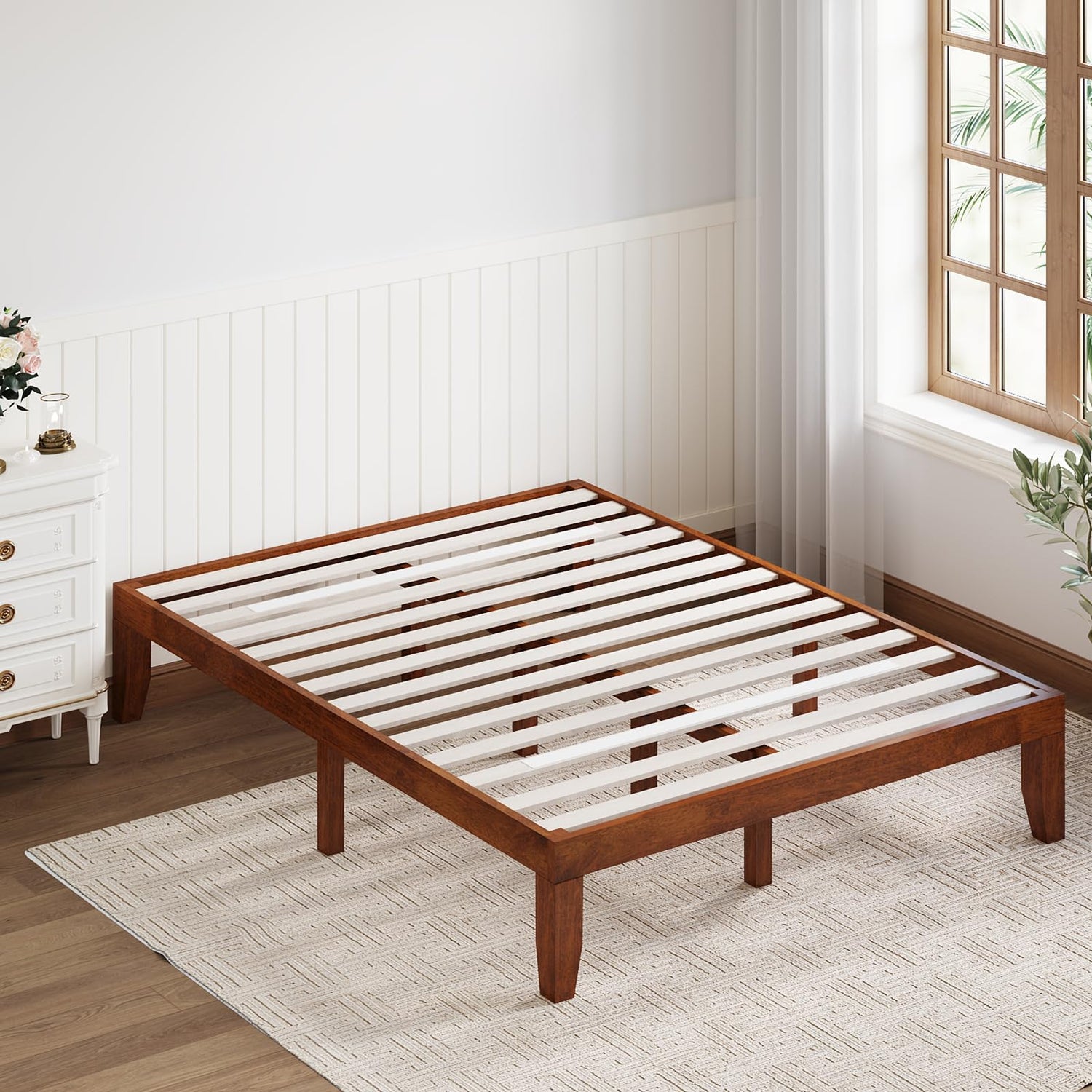 Giantex 14 Inch Queen Walnut Wood Platform Bed Frame with Heavy Duty Slat Support, Minimalist Design, No Box Spring Needed
