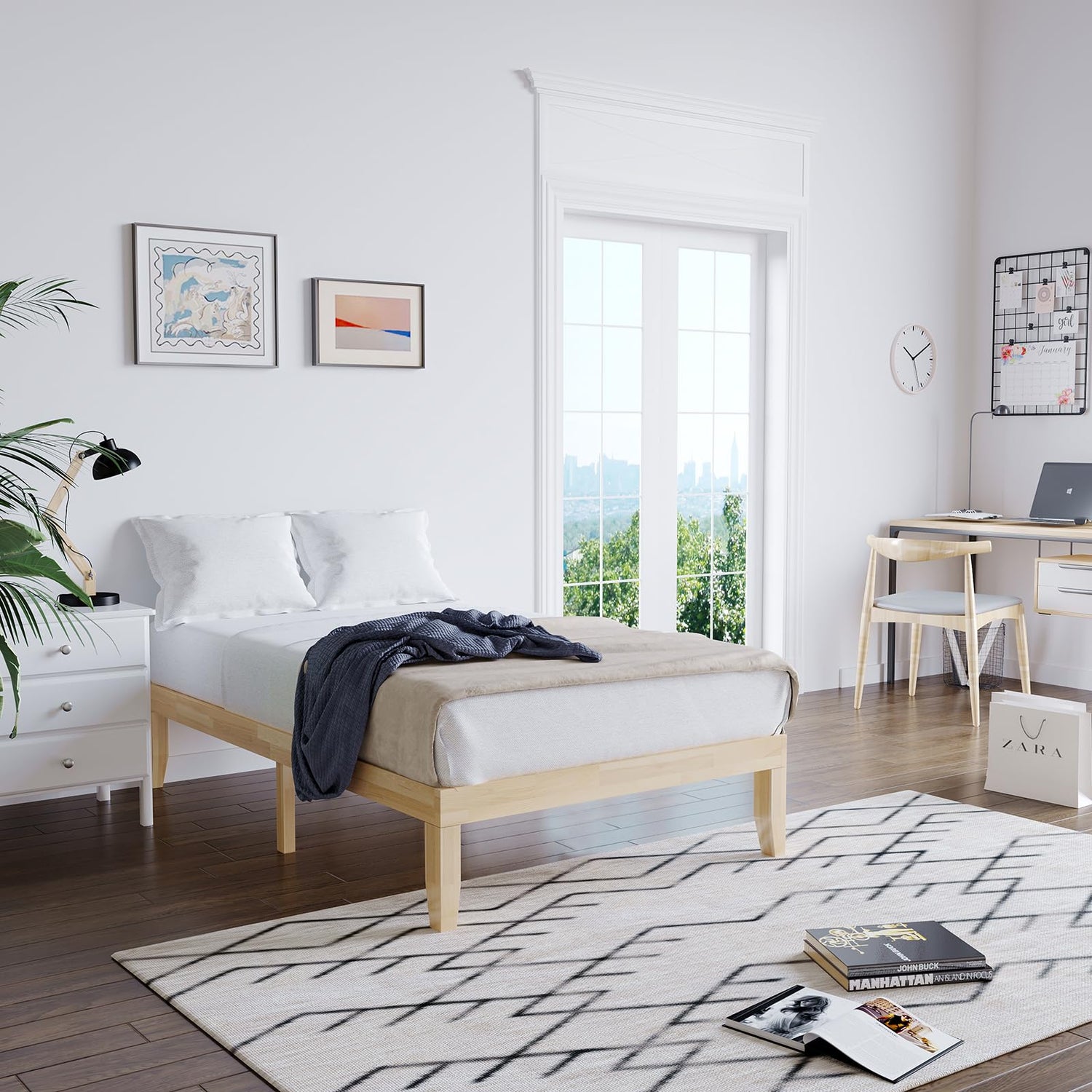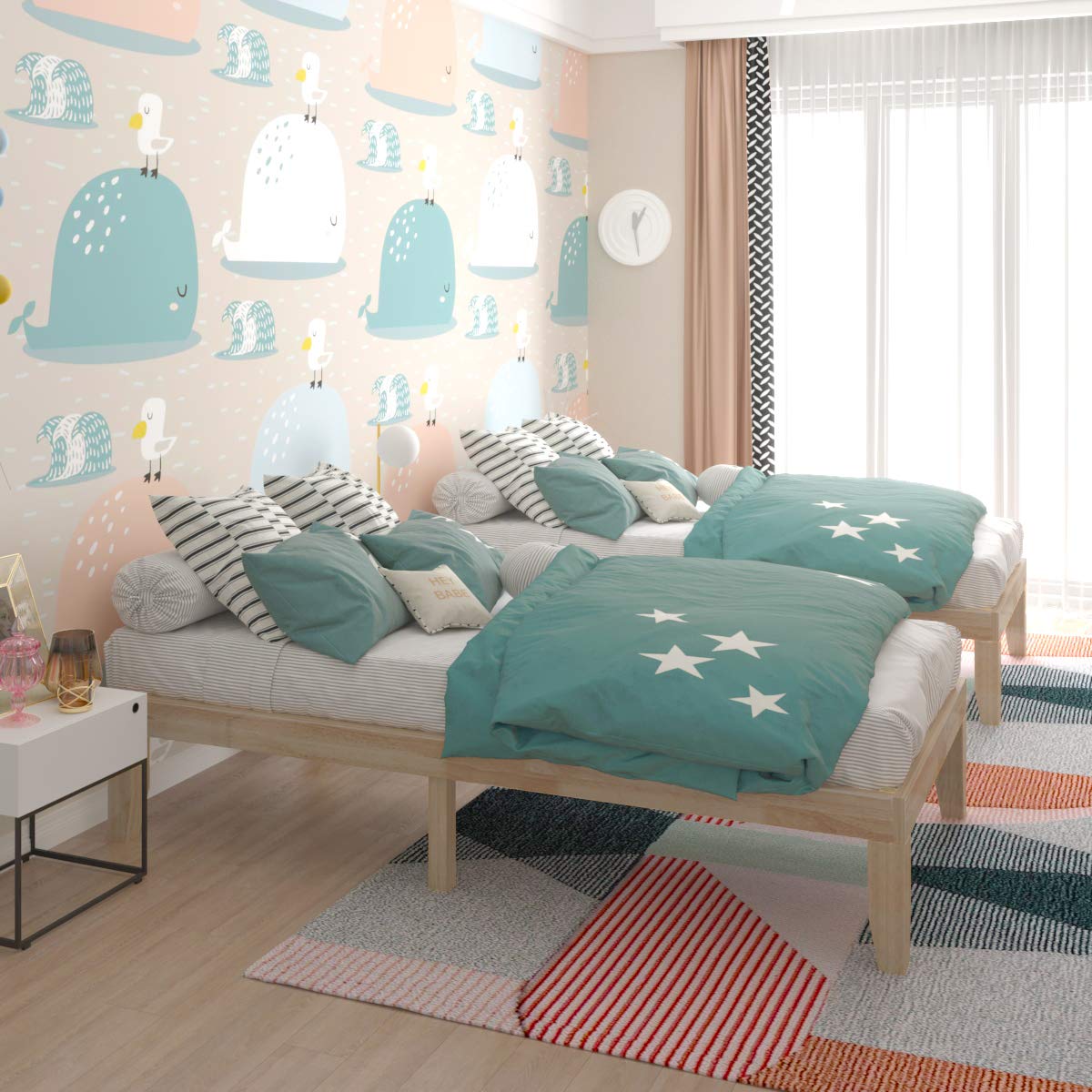- [Solid Wood Bed Frame]: This twin bed frame is made of 100% solid rubberwood frame and poplar support slats, which possesses great strength and durability. Besides, this bed frame with 6 support legs, the weight and pressure of the entire bed frame can be evenly distributed, so it won't make noise or shake when you turn over.