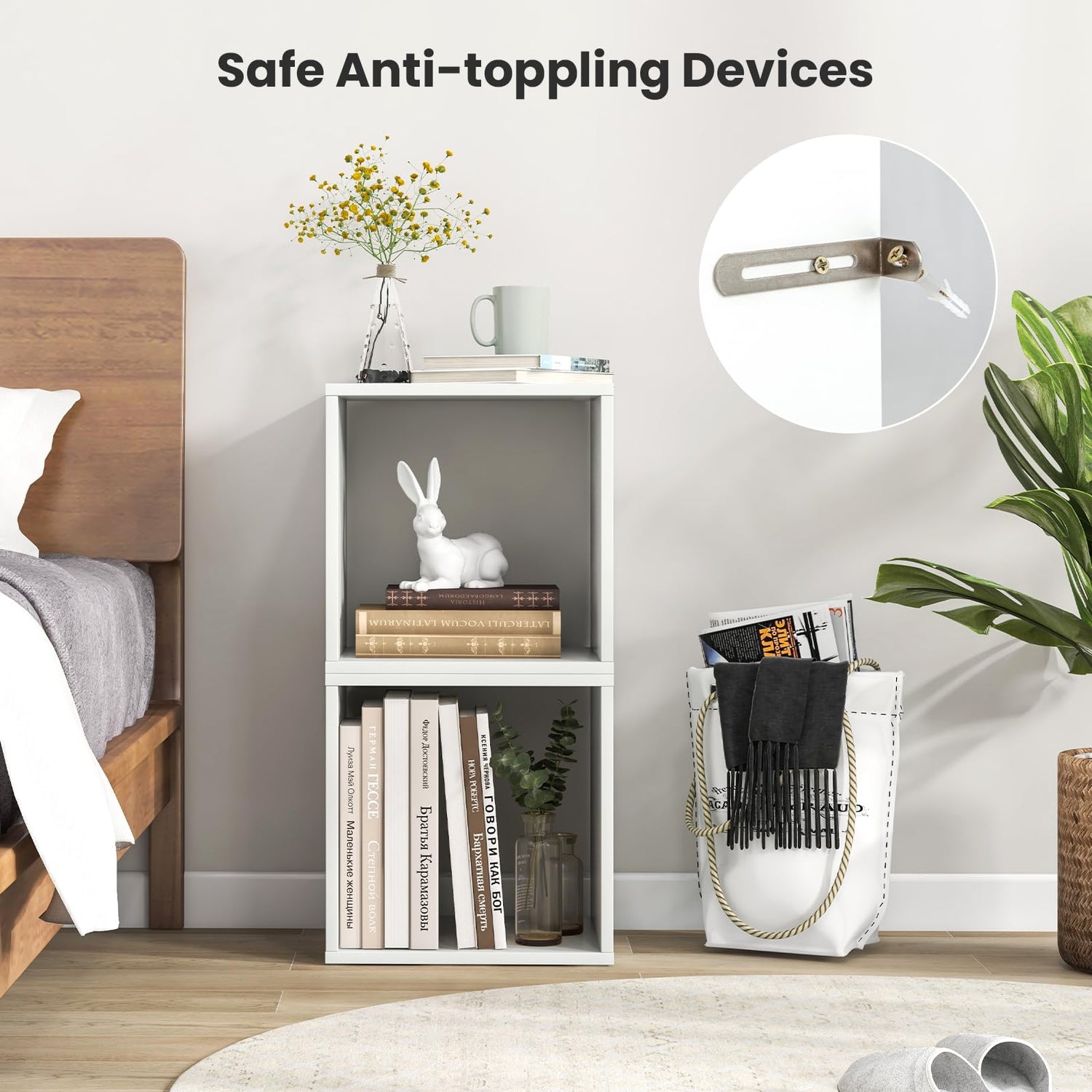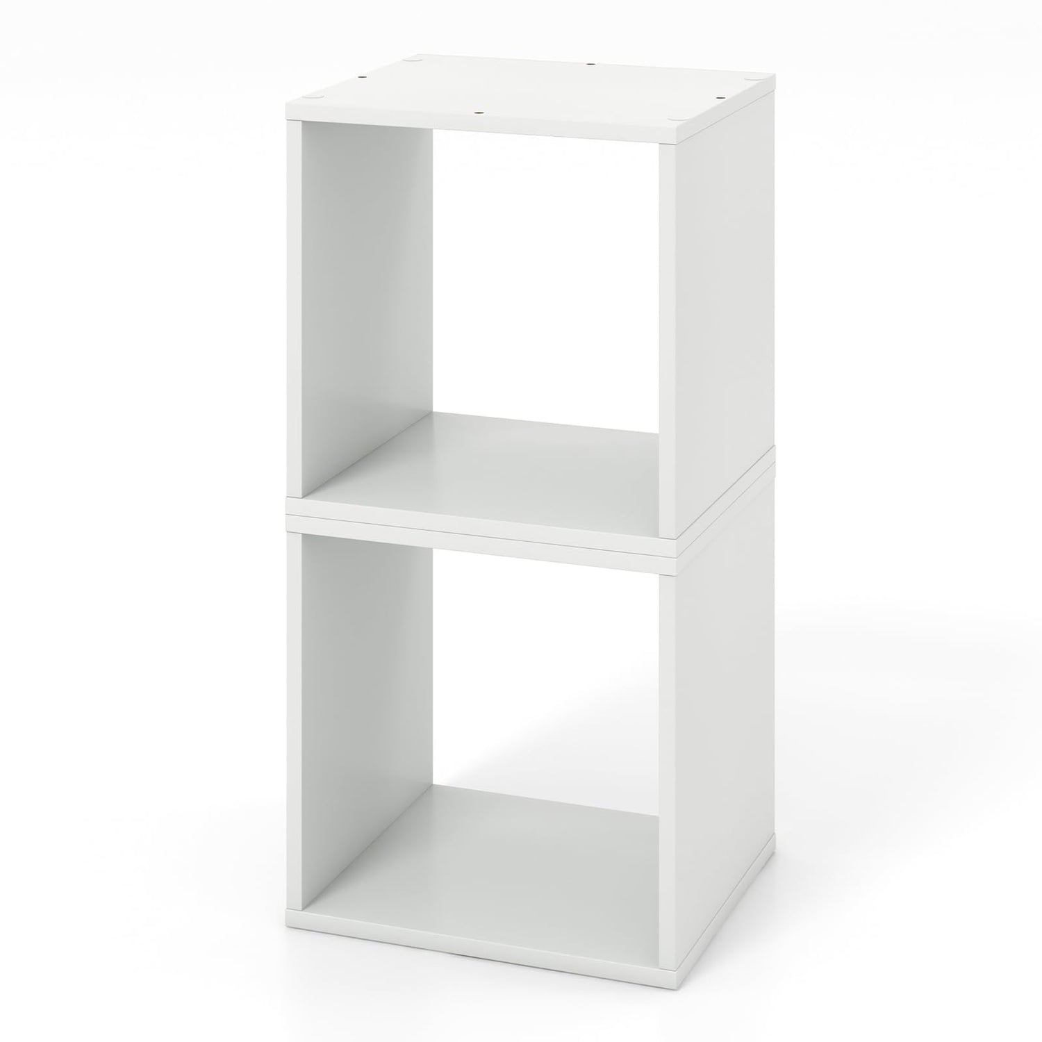 Giantex 2-Tier White Cube Bookshelf Organizer with Stable Stacking Design