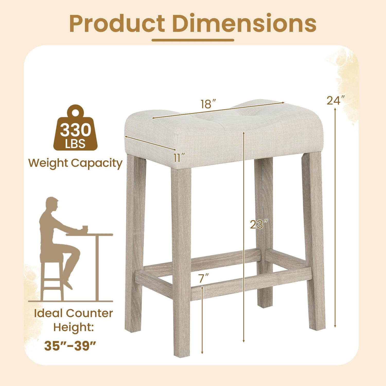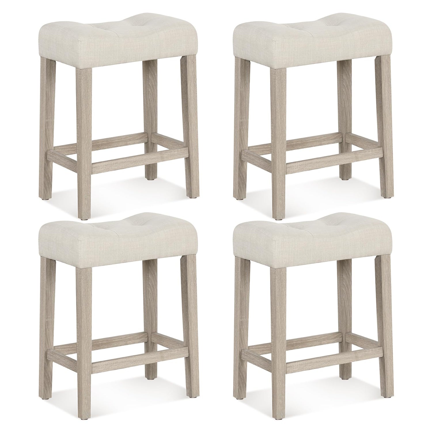 Giantex 24" Bar Stools Set of 4, Upholstered Counter Height Saddle Bar Stools with Footrest and Wood Legs, Farmhouse Button Tufted Backless Barstools for Kitchen Island, Dining Room, Cafe, Beige