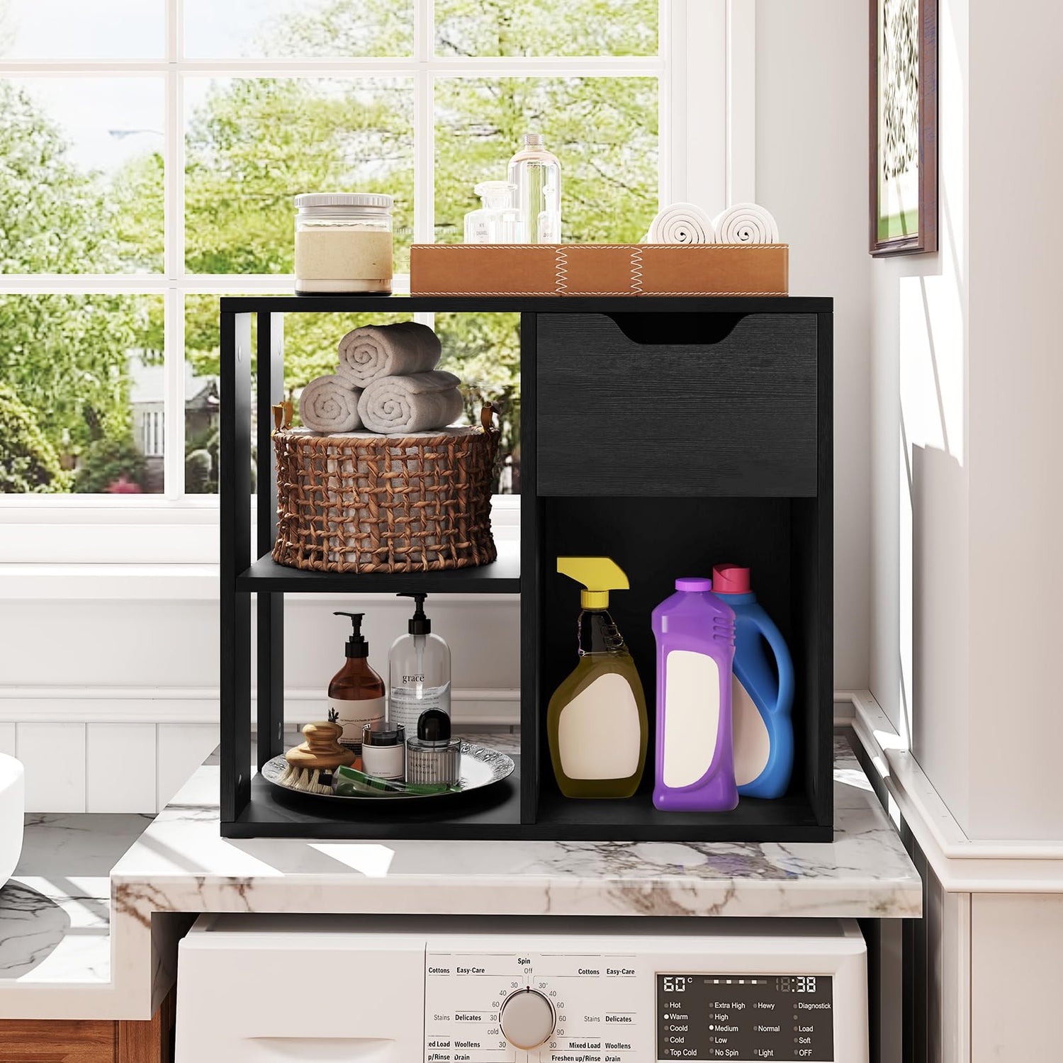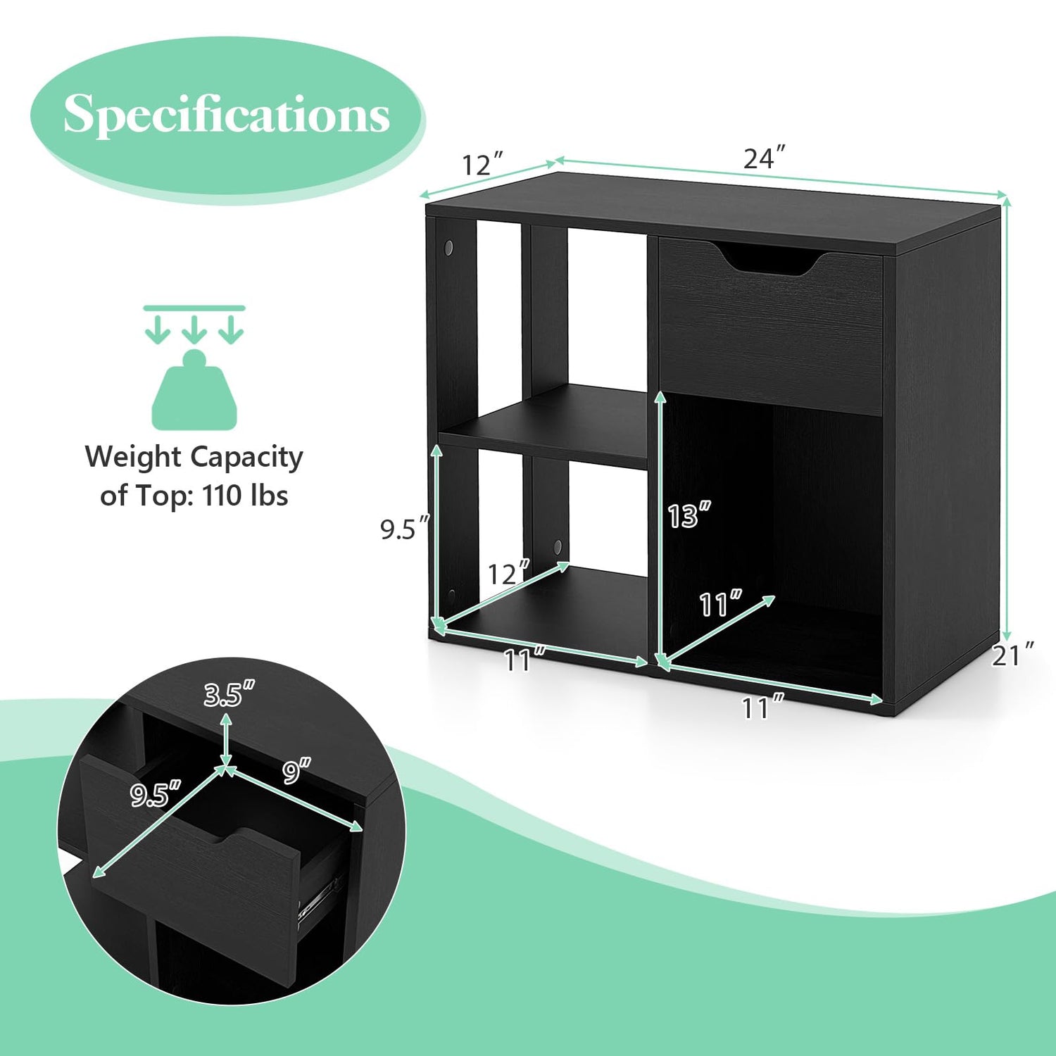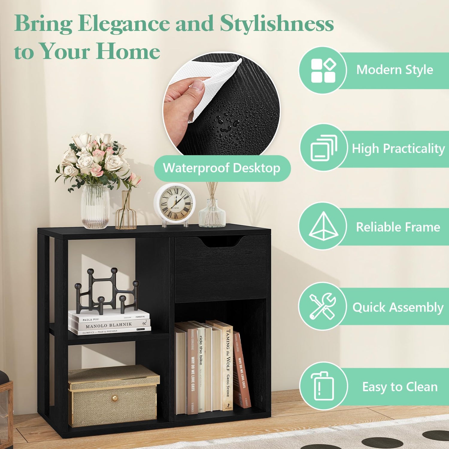 Giantex 3 Cube Bookcase with Drawer, 2 Tier Bookshelf for Small Spaces, Modern Freestanding Display Rack with Open Shelves, Book Case, Wood Cube Storage Organizer Bedroom Living Room, Black