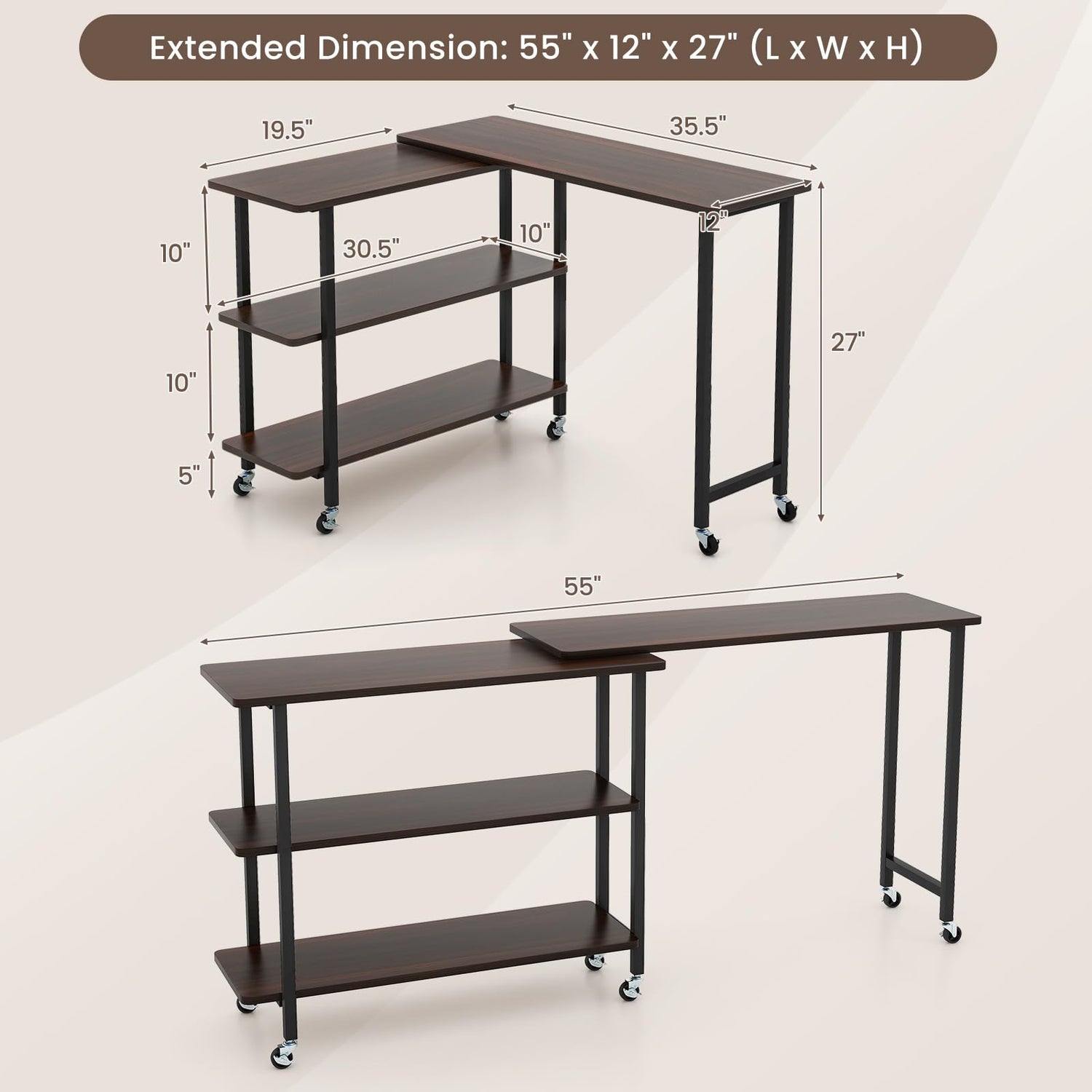 - [6 Lockable Universal Wheels]: Equipped with 6 universal wheels, the L-shaped laptop desk is easy to move, offering you lots of convenience. Plus, the brakes keep it in place and greatly add stability.