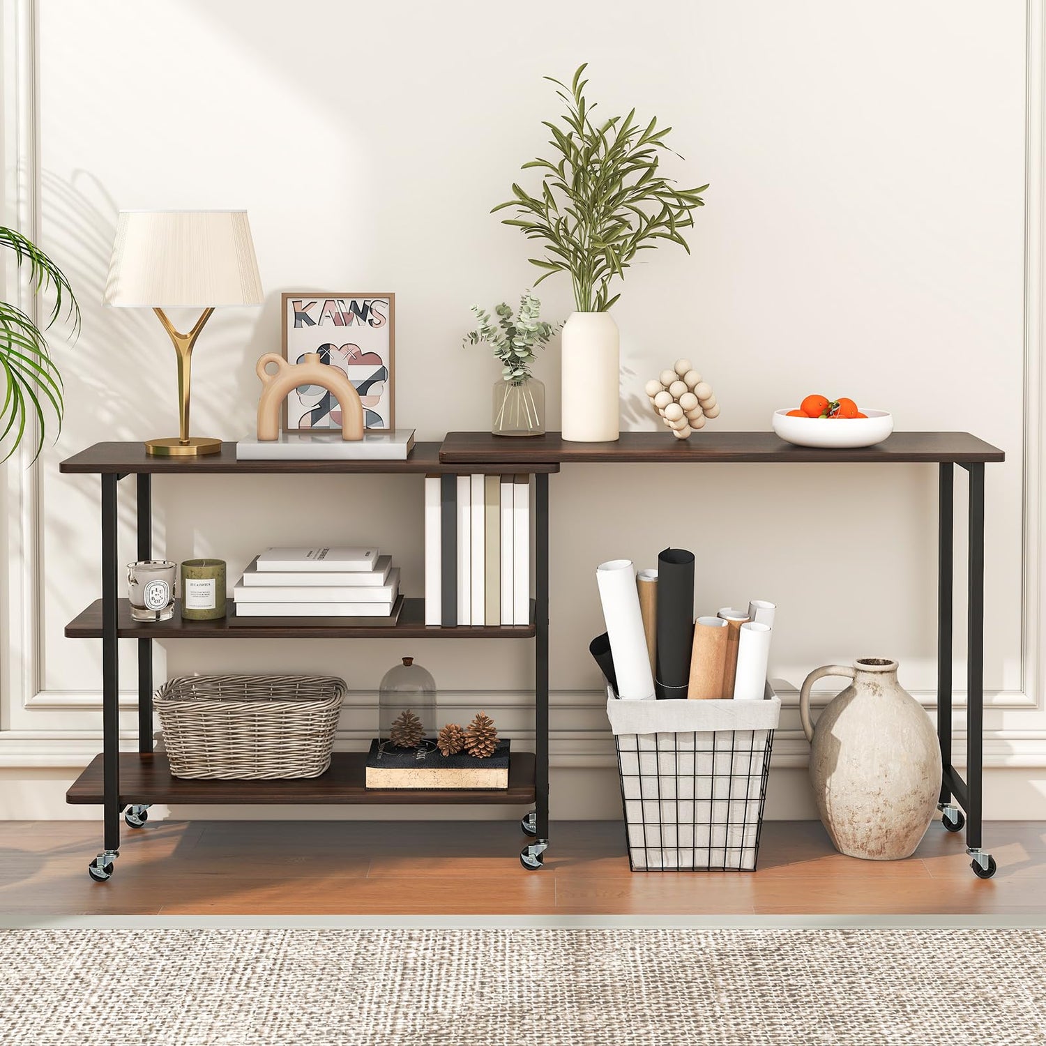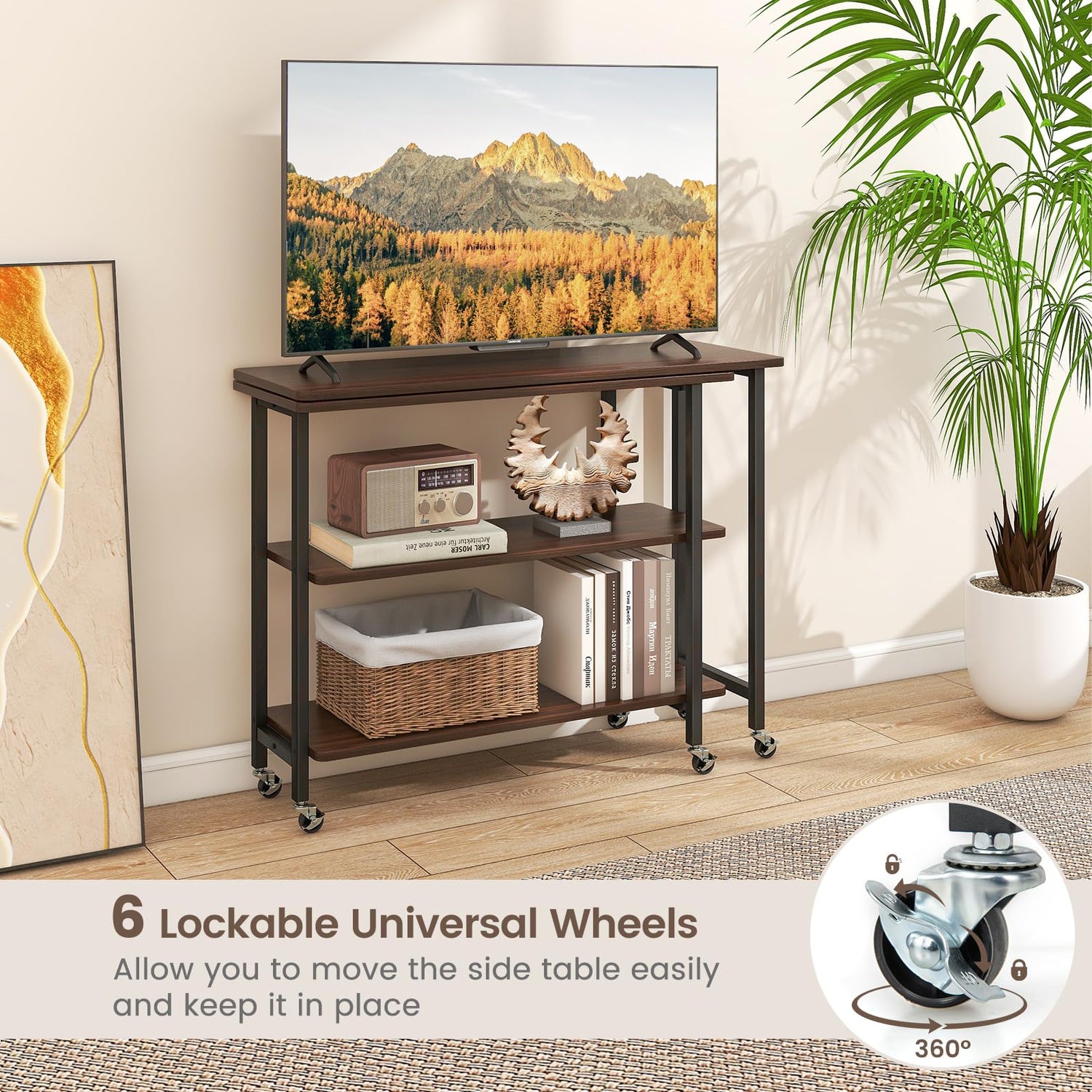 With 360°rotating function, the sofa side table is easy to transform its shape and perfectly fits different scenes and meets needs. Besides, the spacious tabletop and 2-tier storage shelf easily accommodate daily supplies and keep space tidy. The 6 universal casters with brakes allow you to move the side table easily and keep it in place. You can take it as a bedside table, end table, couch table, etc and put it at your home or office.