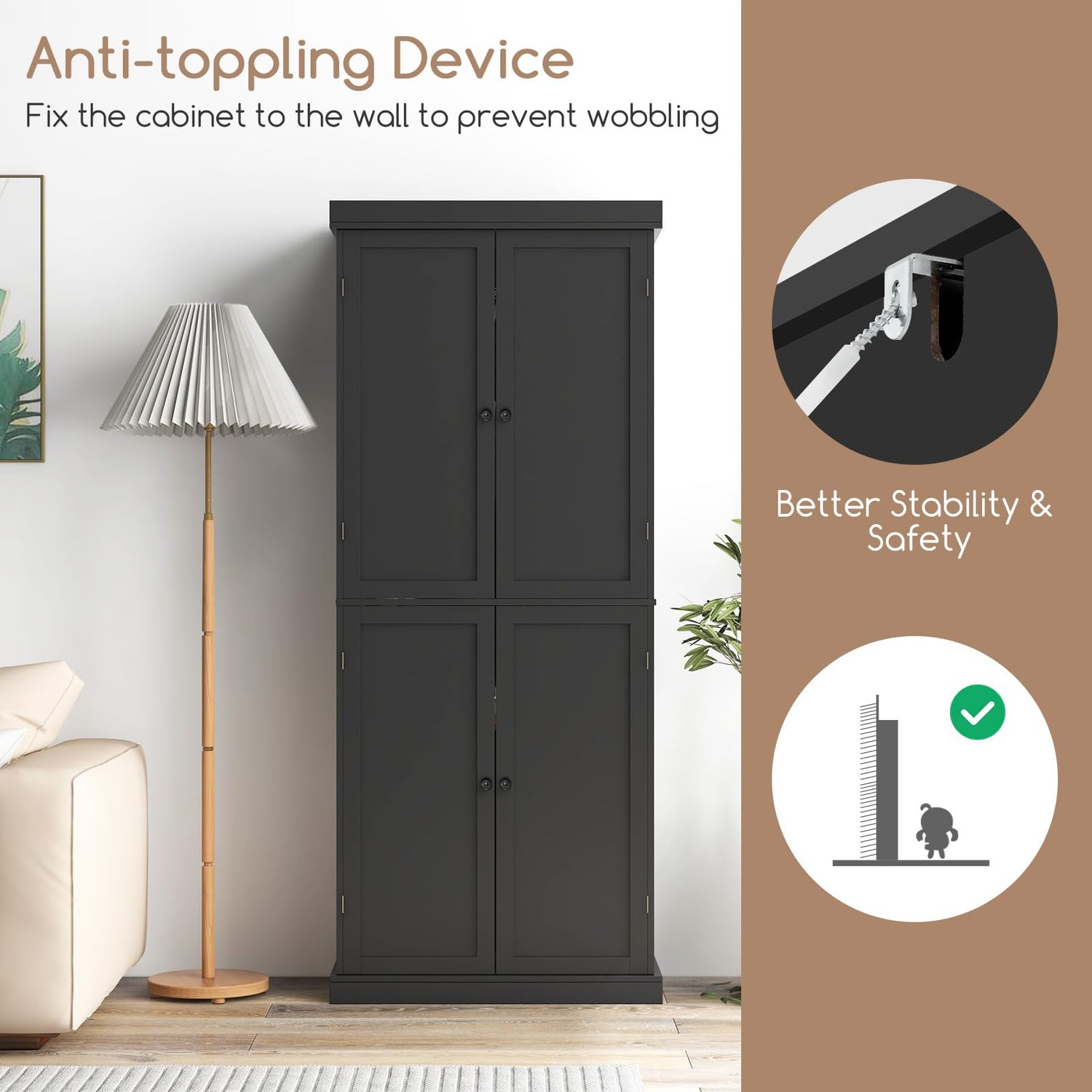 Giantex 4 Door Kitchen Pantry, 72.5” Tall Buffet Cabinet, Freestanding Modern Storage Cabinet Organizer w/ 6-Tier Shelves, 2 Adjustable Shelves, Floor Cupboard for Dining Room, Living Room (Black)