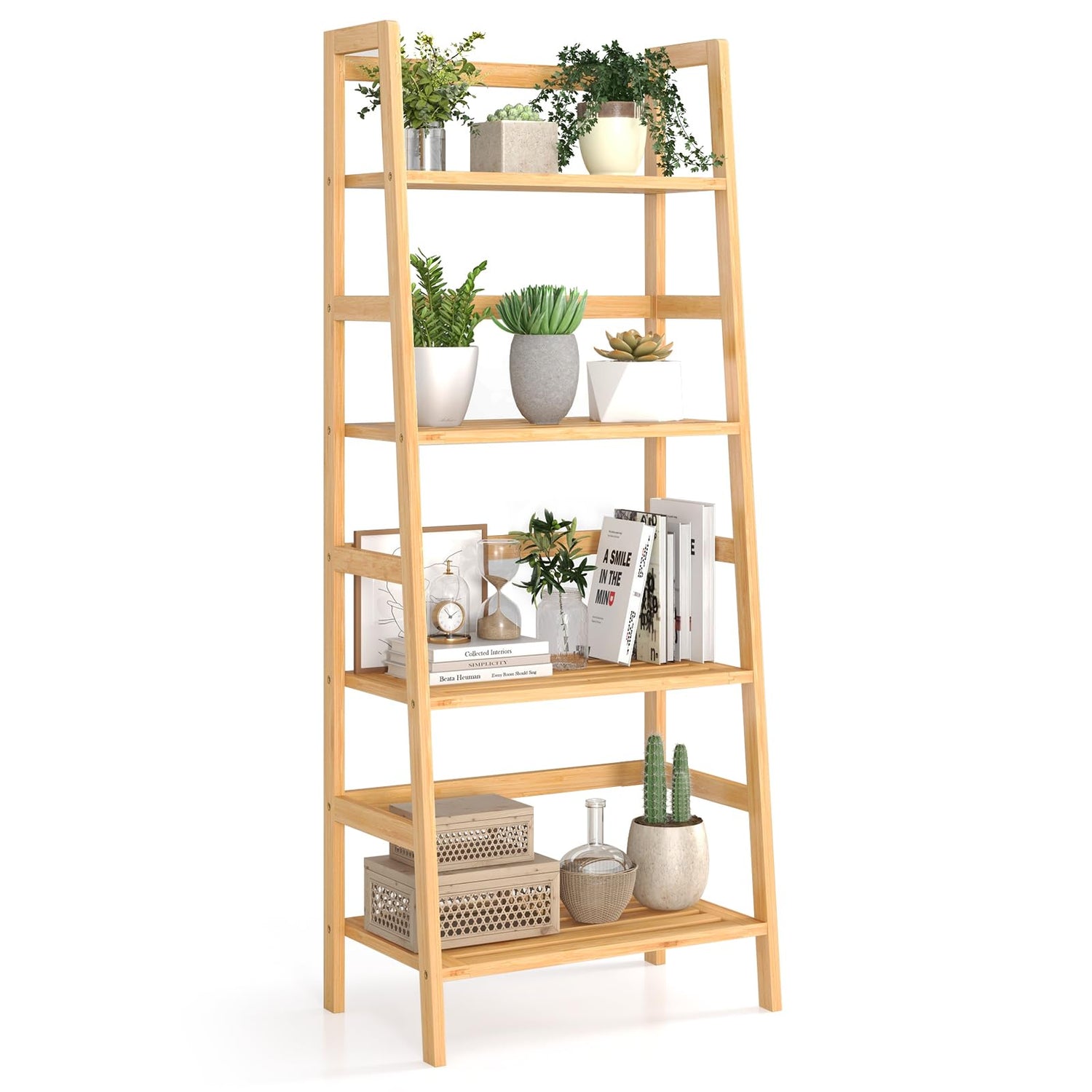 - [Versatile Ladder Shelf]: This bamboo storage unit can function as a plant stand, display shelf, kitchen countertop organizer, kids bookshelf, bathroom stand, ect. Perfect for decorating your living room, bedroom, study, bathroom, kitchen, hallway, or any other area. It meets various storage needs while maximizing space and organization efficiency.