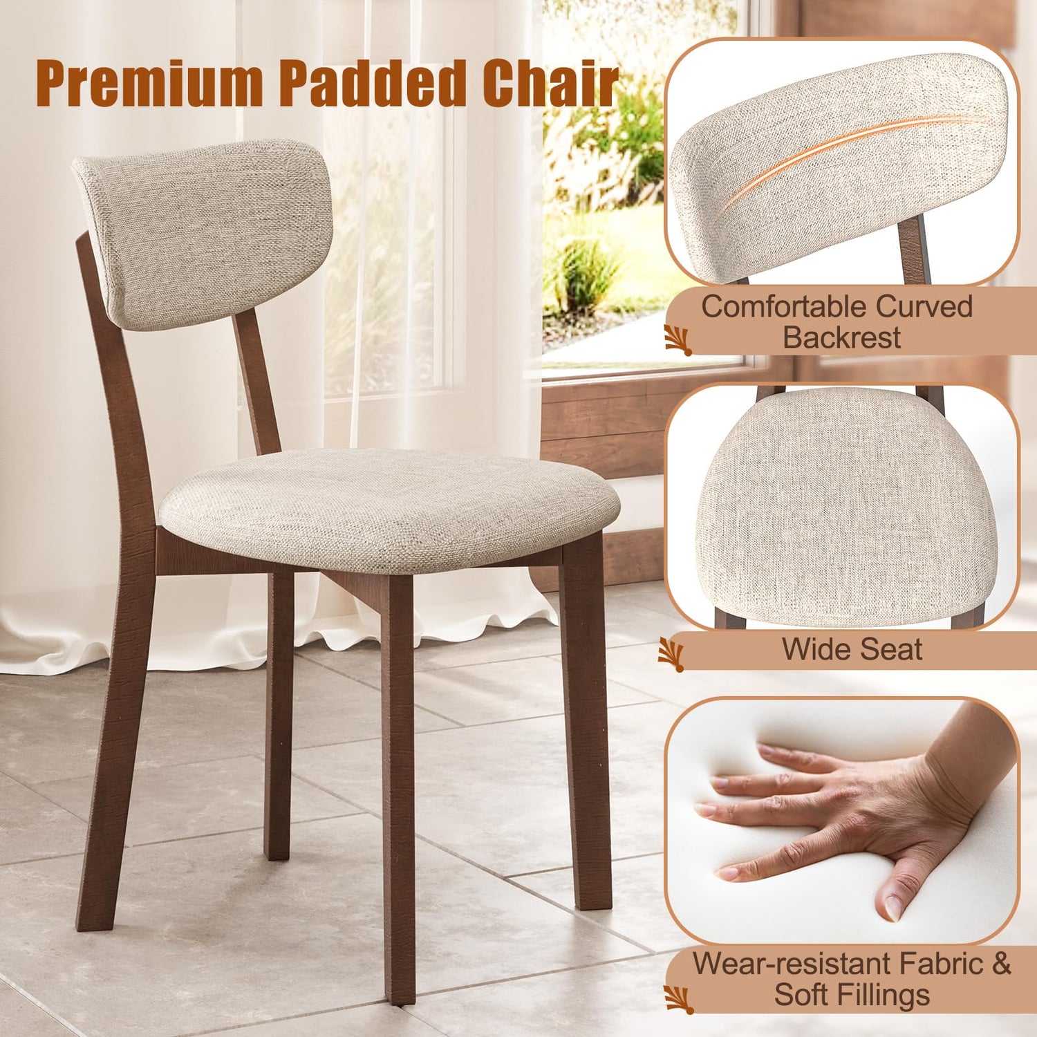 - [Premium Dining Set]: Elevate your dining experience with this 5-piece set featuring a spacious rectangular dining table and 4 upholstered chairs, perfect for family dinners or casual gatherings. Crafted with selected rubber wood legs, the table and chairs offer excellent support for long-term safe use.