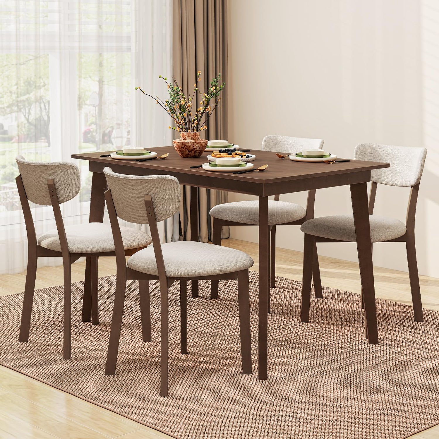 Giantex 5-Piece Dining Table Set for 4, 48” Kitchen Table & 4 Dining Chairs with Padded Seat, Rubber Wood Legs, Curved Backrest, Dinette Set for Breakfast Nook, Dinner, Living Room, Restaurant