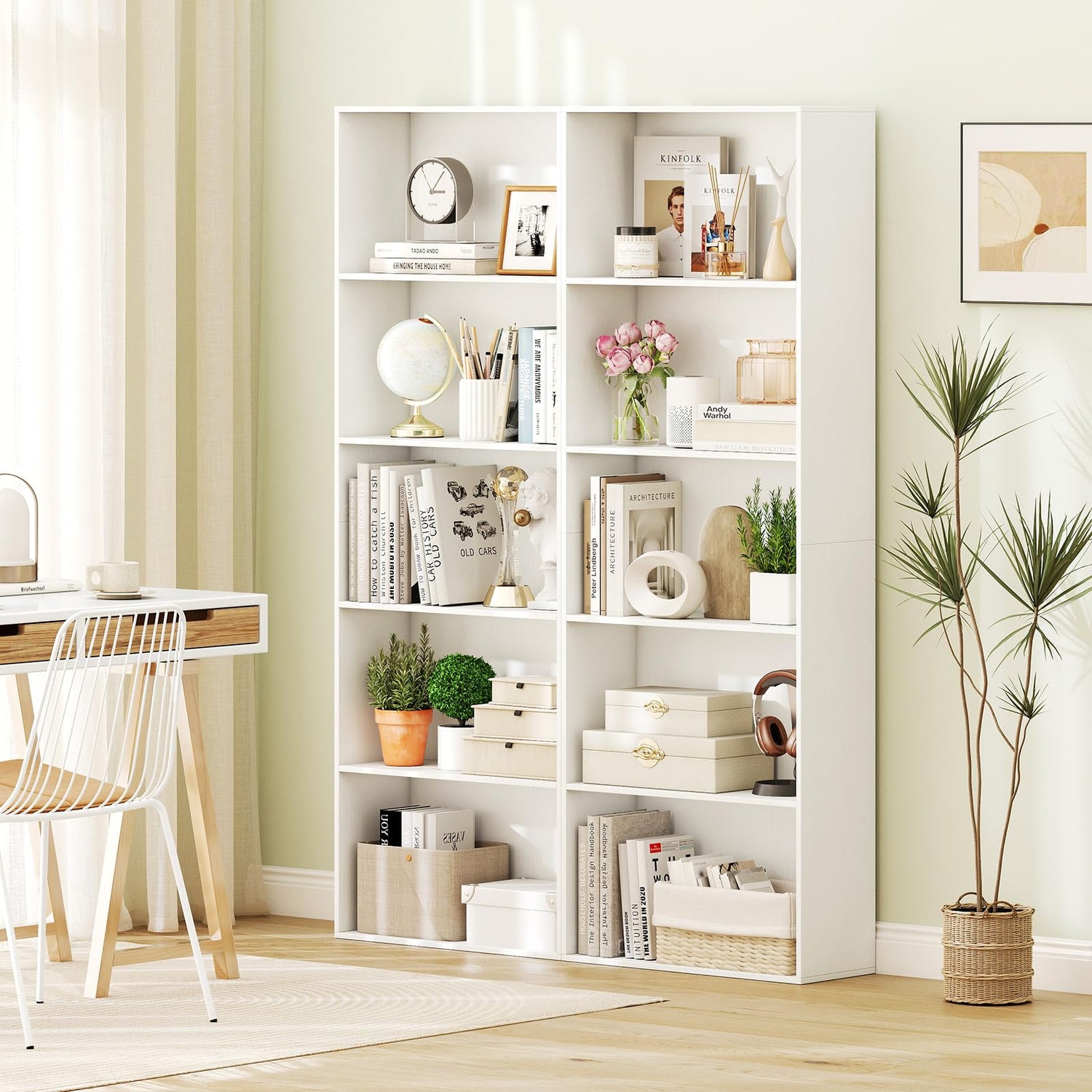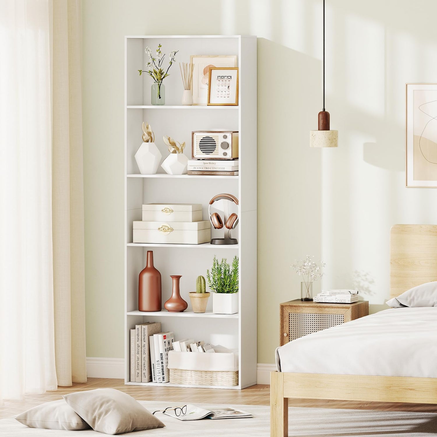 - [Versatile 5-Shelf Storage]: Elevate your space with the 5-tier bookshelf, offering large storage on each shelf for books, decorations, magazines, photos, potted plants, etc.
