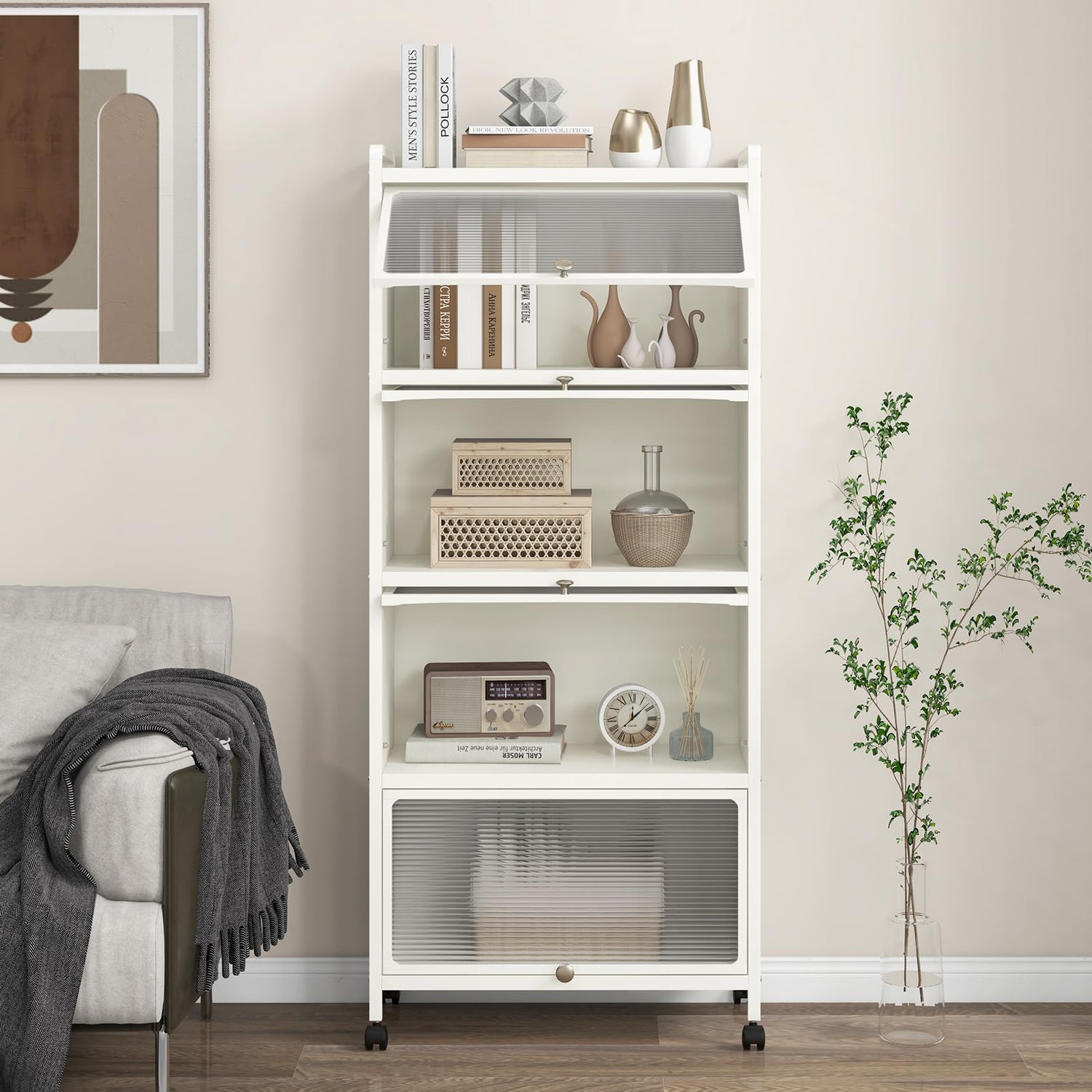 Giantex 5-Tier Kitchen Storage Cabinet, Mobile Microwave Stand with Flip-up PC Doors, Freestanding Kitchen Bakers Rack with 4 Rolling Casters, for Dining Room, Living Room and Study (White)