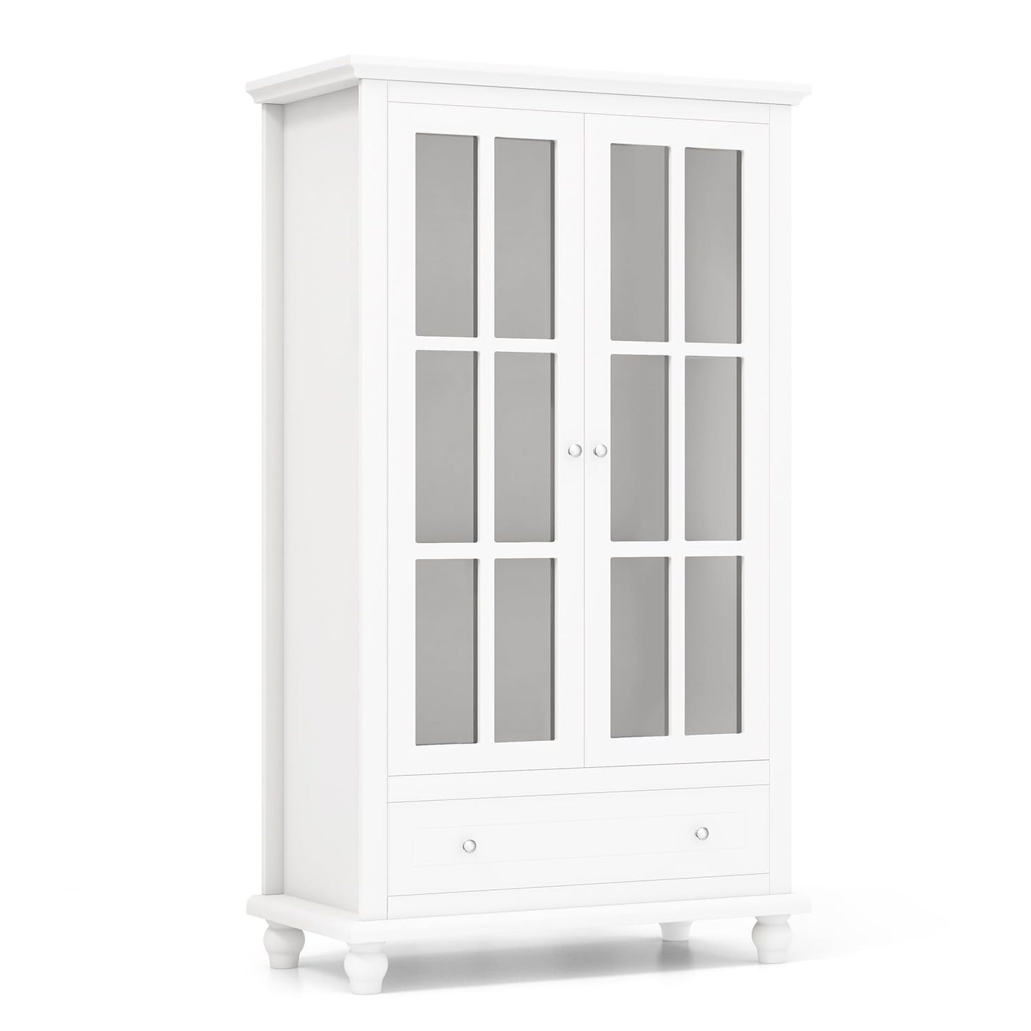 Giantex 55" White Tall Wooden Bookcase with Glass Doors, Adjustable Shelves, and Drawer