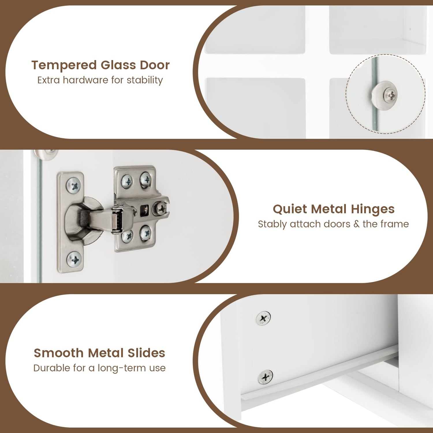 Convenience is key with the Giantex bookcase. It includes quiet metal hinges that minimise noise and impact when closing the doors, and the drawer is equipped with smooth metal slides for effortless access. This thoughtful design enhances your user experience, ensuring that your belongings are not just stored, but showcased with grace.