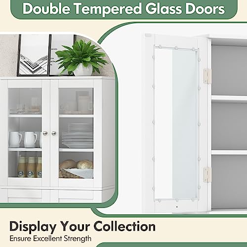 - [Dual Tempered Glass Doors]: The tall storage cabinet is equipped with double tempered glass doors, which help to display your collection. Plus, different from ordinary glass, our tempered glass can ensure excellent strength, allowing for higher security.