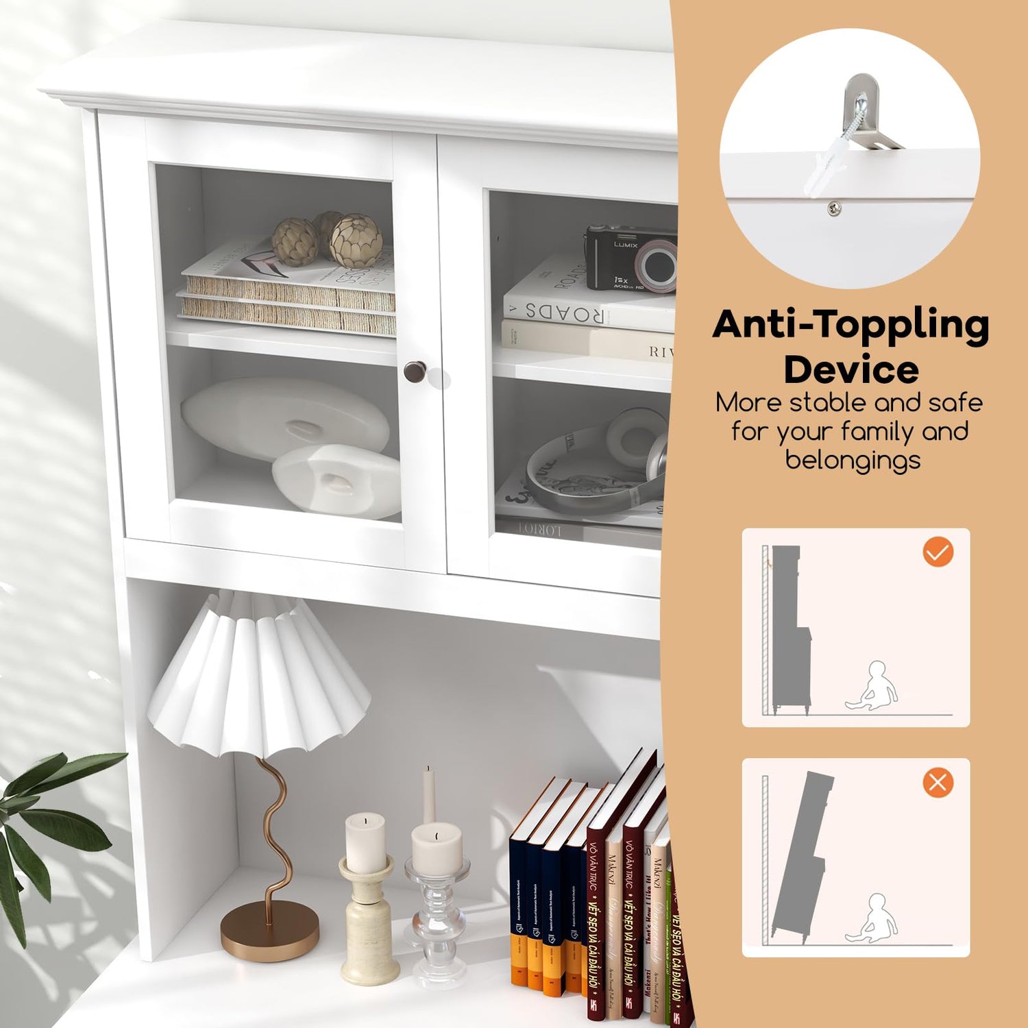 - [Solid Construction for Safety]: Our hutch cabinet is reinforced with anti-toppling devices and an extra support leg, ensuring greater stability and safety for your family and belongings compared to traditional cabinets. The cabinet's transparent tempered glass doors combine style with strength, offering increased durability.