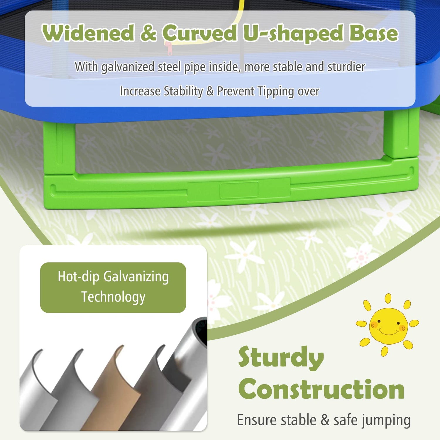 - [Max Load 220 Lbs]: Giantex toddler trampoline is built with hot-dip galvanizing technology, ensuring stable and safe jumping experience. Widened and curved U-shaped base, with galvanized steel pipe inside as well, is more stable and sturdier to increase stability and prevent your kids from tipping over.