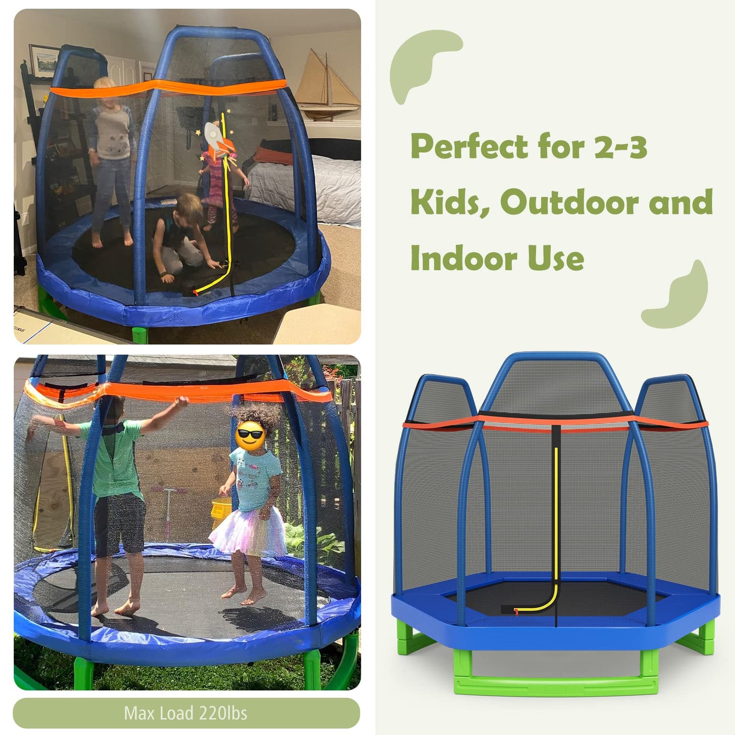 Giantex 7FT 84” Kids Trampoline for Toddlers with Enclosure Net, ASTM Approval & Widened Base for Indoor Outdoor