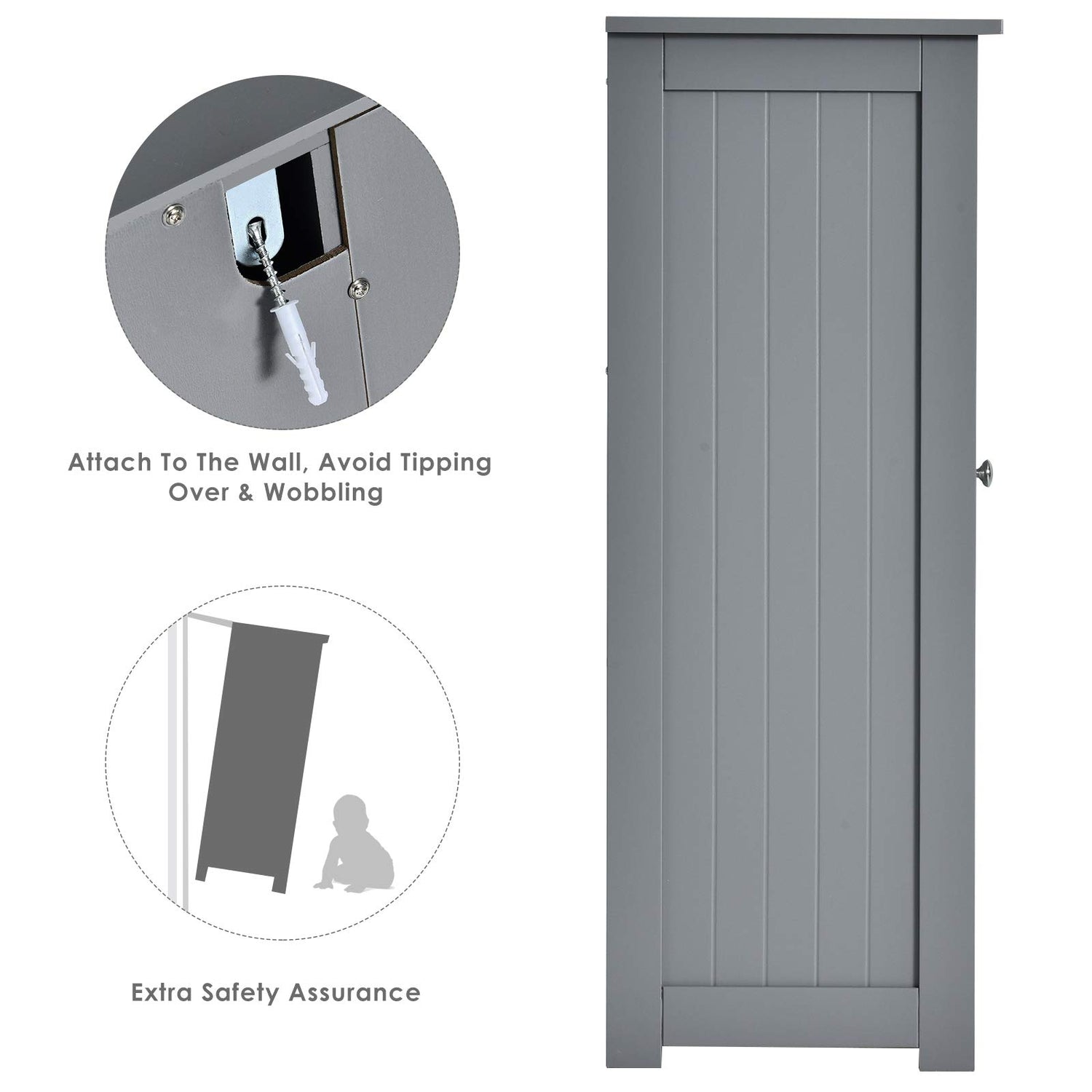 - 【Adjustable Shelf & Tilting Preventing Design】: The shelf in the cupboard can be adjusted with 3 different positions freely. Plus, you can remove the divider to enlarge storage space. And the cabinet is also equipped with tilting preventing device to prevent tilting and falling down.