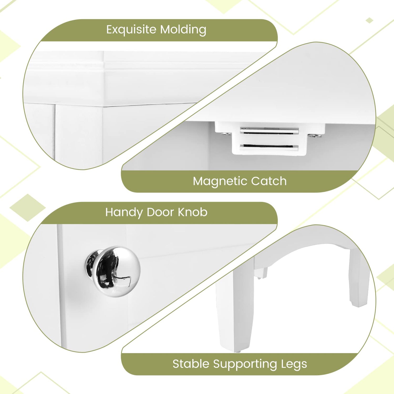 - ✿✿Sleek & Modern Design: Designed with a simple and classic appearance, this bathroom cabinet organizer matches easily with your existing home decorations. And the groove pattern on the doors and exquisite molding on the top and bottom add more elegant elements to your space.