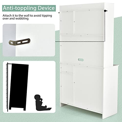 - 『Selected Material & Stable Structure』: Made of engineered wood and MDF board, this kitchen storage cabinet is wear-resistant and durable for long-term use. The solid base offers strong support to the cabinet while avoiding dust accumulation. Additionally, the anti-toppling devices are equipped to protect you and your family from potential dangers.