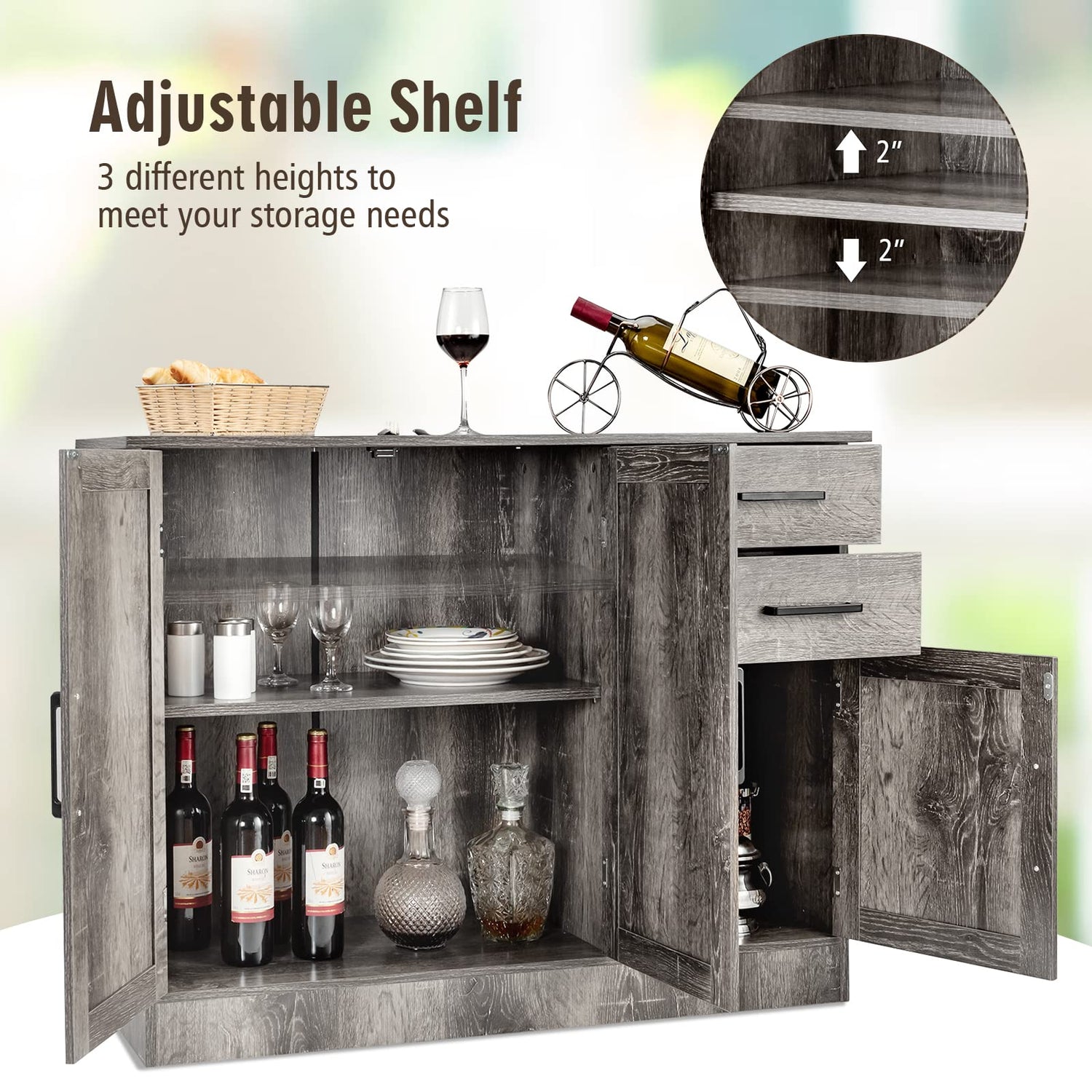 Giantex Buffet Server Sideboard Storage Cabinet Console Table Utensils Organizer Kitchen Dining Room Furniture, Entryway Cupboard with 2-Door Cabinet and 2 Drawers (Gray)