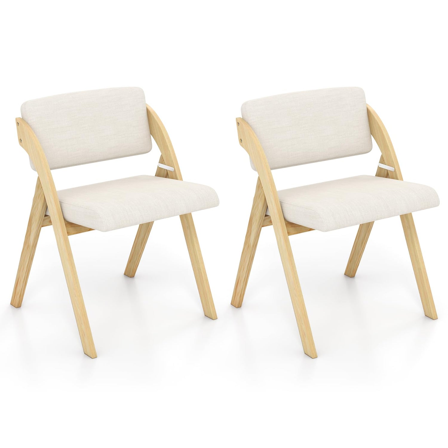 Giantex Folding Dining Chairs Set of 2, Upholstered Wooden Folding Chair 2 Pack, Portable Kitchen Chairs with Padded & Seat Backrest, Accent Chairs for Wedding Picnic Party, No Assembly, Natural