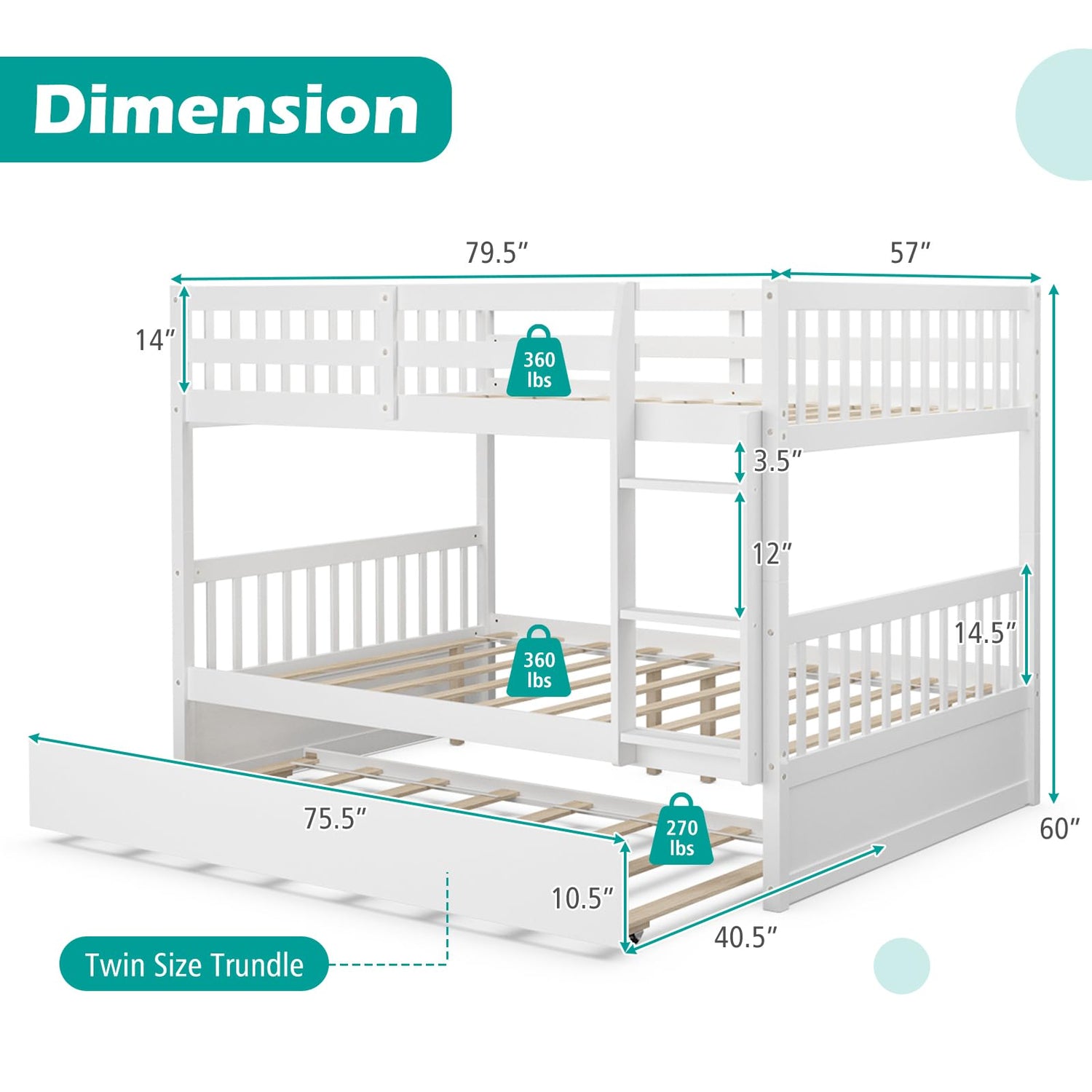 Giantex Full Over Full Bunk Bed with Trundle, Solid Wood Trundle Bed Frame w/Guardrails and Ladder, Convertible to 2 Beds, Full Size Bunk Beds for Adults Kids Teens, No Box Spring Needed, White