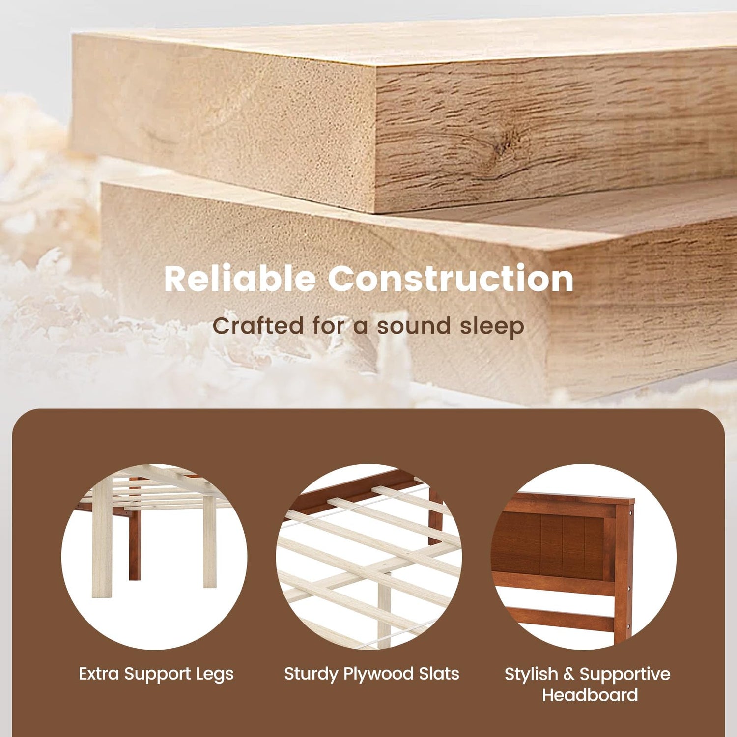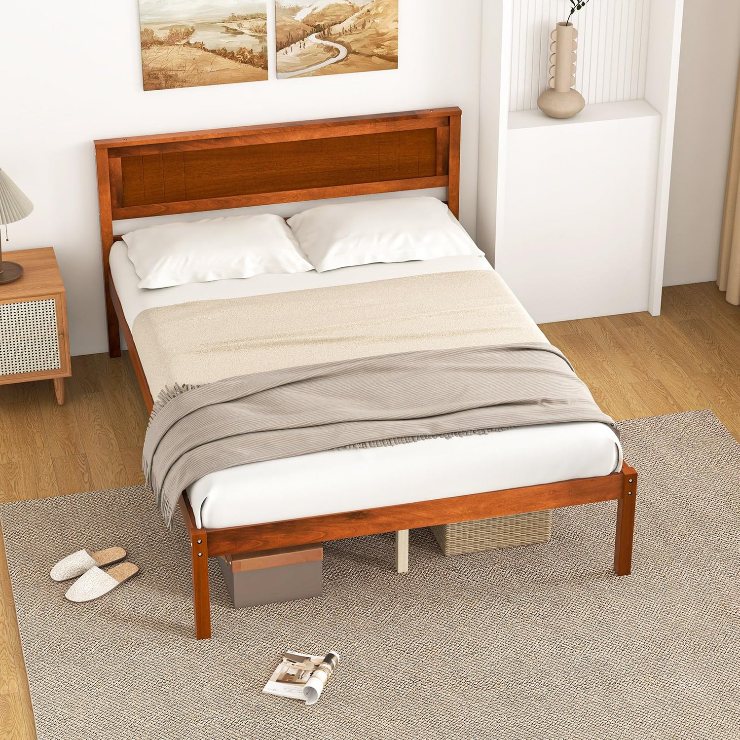Giantex Full Size Wood Platform Bed with Headboard, Mid Century Solid Wood Full Bed with Slat Support, Double Bed Frame with 16" Under Bed Storage, No Box Spring Needed, Easy Assembly, Walnut
