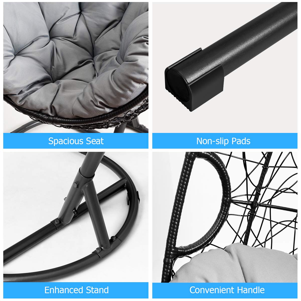 - Indoor/Outdoor Use: The swing chair is designed for both indoor and outdoor use. Unique egg-shape appearance blends with the surrounding environment better and adds a special leisure feeling.