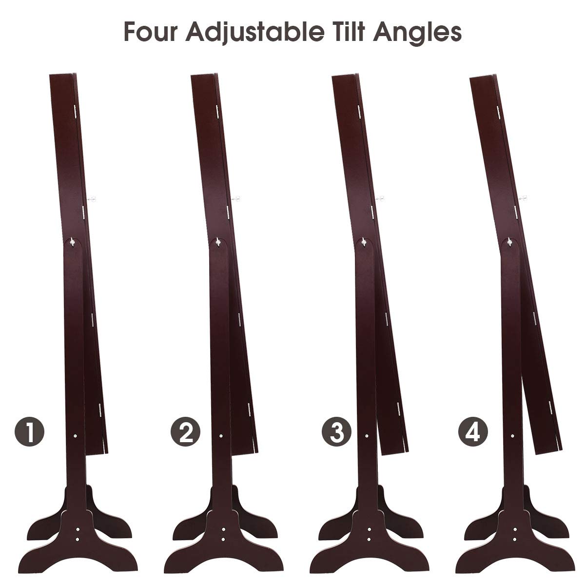 - 【4 Adjustable Angles】The mirror can be tilted to 4 different angles. You can swivel the mirror and fix the position. It will not tip over or swivel backwards easily. This full length mirror is ideal for to you dress and makeup.