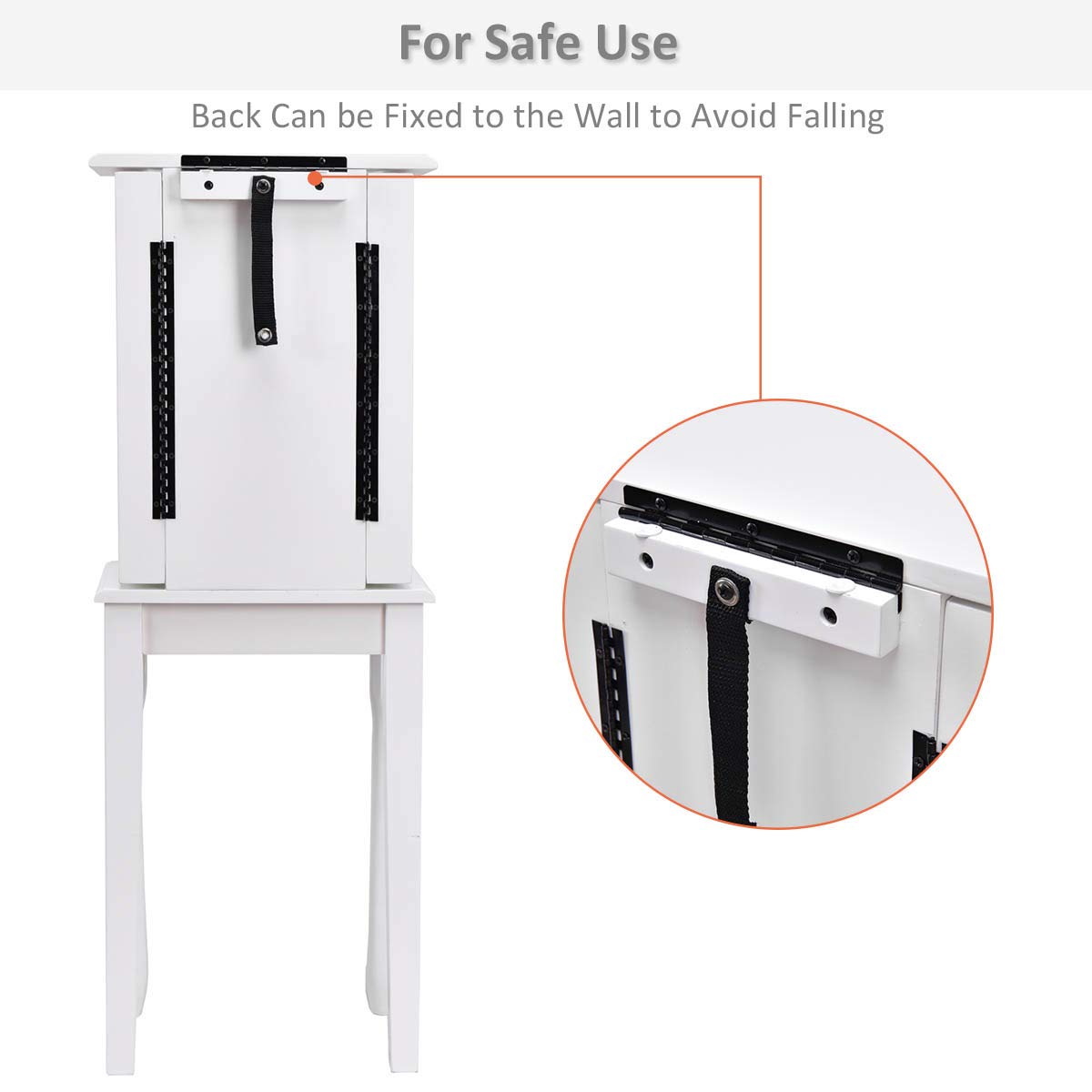 - 【Smart High-Leg Armoire Ideal for Daily Use】Unlike the general floor-standing jewellery cabinet, this has 4 high feet, which is easier to clean. The design of the tall feet is also relatively easy to move.