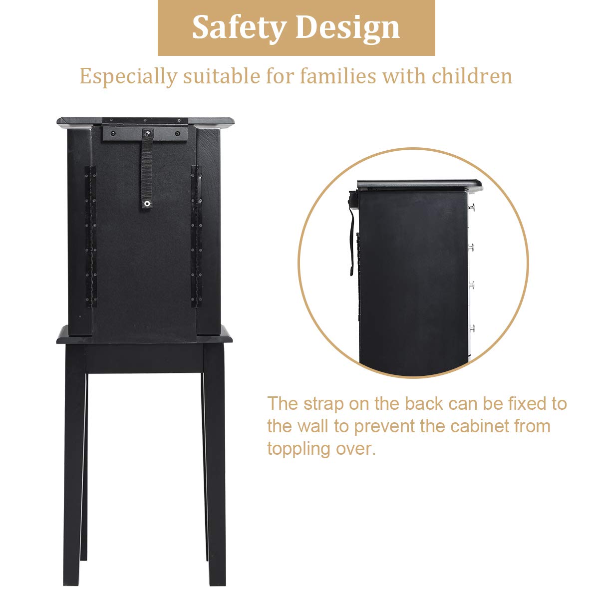 - 【Wall Mounting for Safe Use】Have you considered the safety of the cabinet? We have upgraded the jewelry cabinet with back safe mounting to avoid falling and tipping over. You and your family members safety is guaranteed. To help you have a nice and secure armoire.