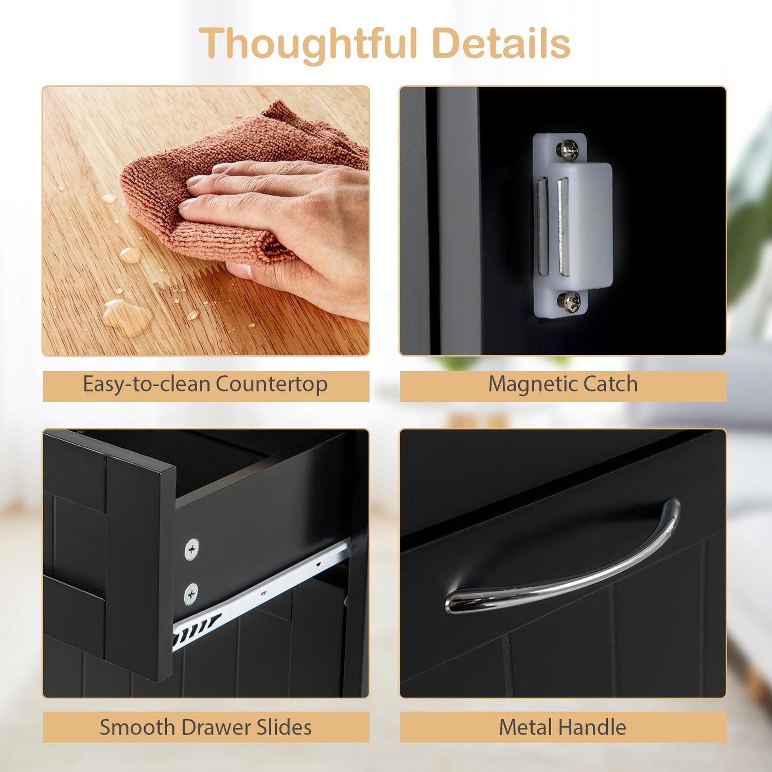 - [Thoughtful Details]: The easy-to-clean countertop makes maintenance a breeze. Fitted with magnetic catch, it is smooth and mute to open the door. Just feel free to grab the metal slides and handle to pull out the drawer.