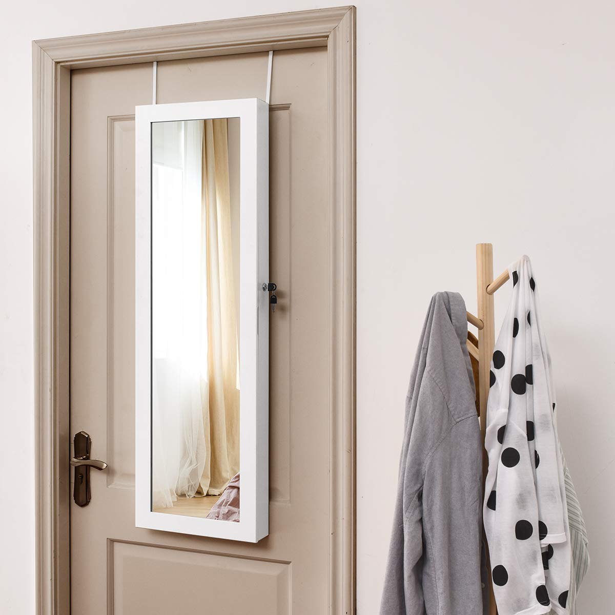 - 【Door Wall Mount Jewelry Armoire】To hang the jewelry cabinet over the door with 2 smart hooks. The hooks are compatible with various doors and do not damage the doors.