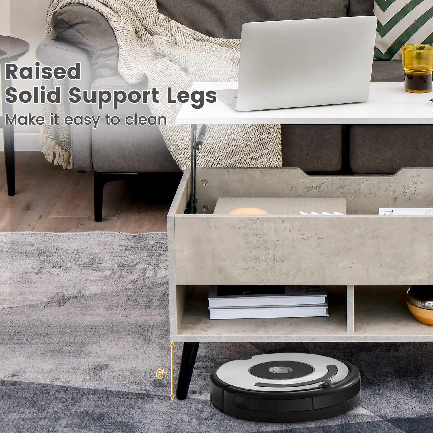 Giantex Lift Top Coffee Table, Modern Cocktail Table w/Hidden Compartment & 2 Open Shelves, Flip Top Center Table, Wooden Pull up Coffee Table for Living Room, Reception Room, Office (Grey)