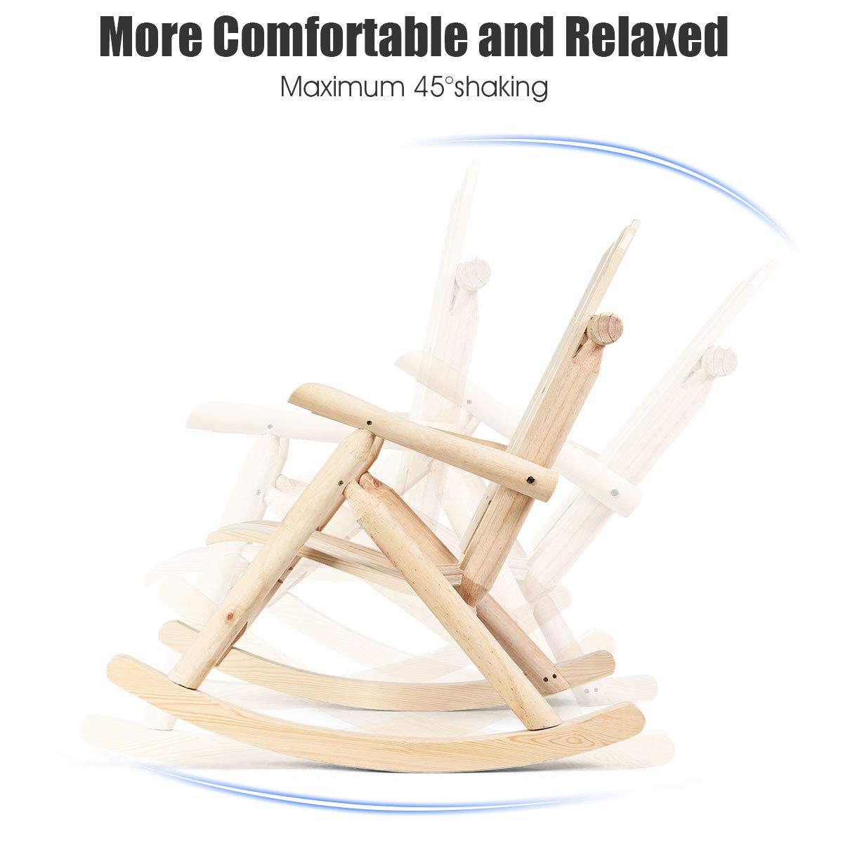 - 『Solid Wood Construction with Powerful Capacity』: The sturdy frame of our rocking chair is made of solid cedar and fir wood which is strong and uneasily broken or warped. All parts are firmly connected with high-quality hardware. It will accompany you for many years of leisure time. It can support up to 250lbs.