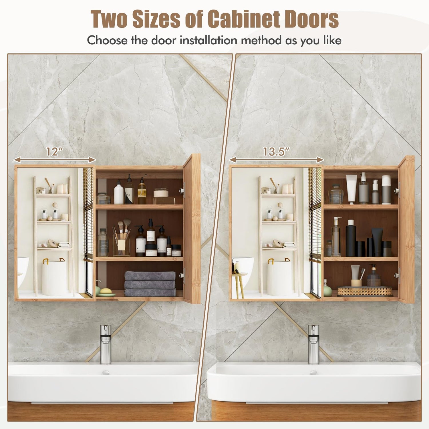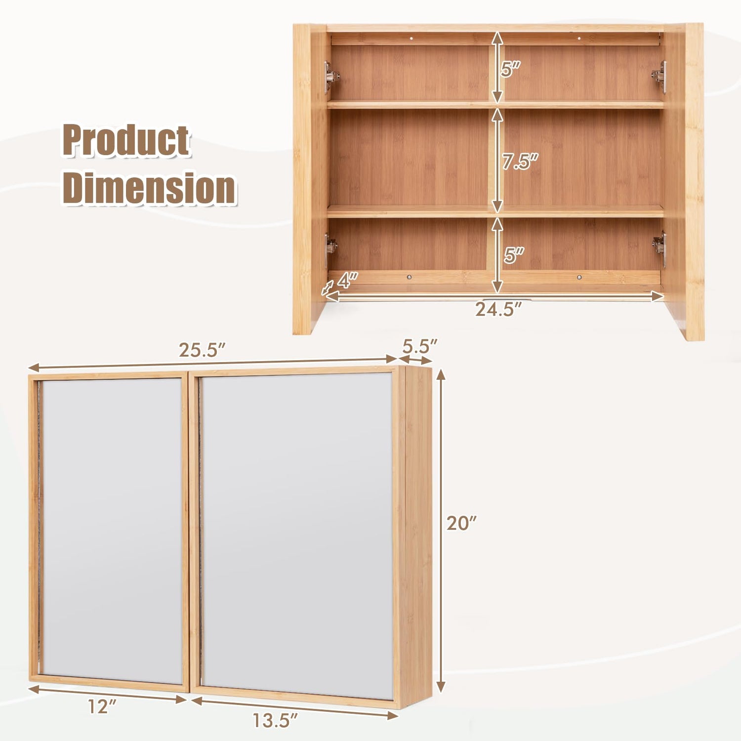 Giantex Medicine Cabinet, Bathroom Medicine Cabinet with Mirror, Reversible Double Door, 2 Adjustable Shelves, Bamboo Vanity Mirror Cabinet for Entryway, Living Room, Bathroom Wall Cabinet, Natural