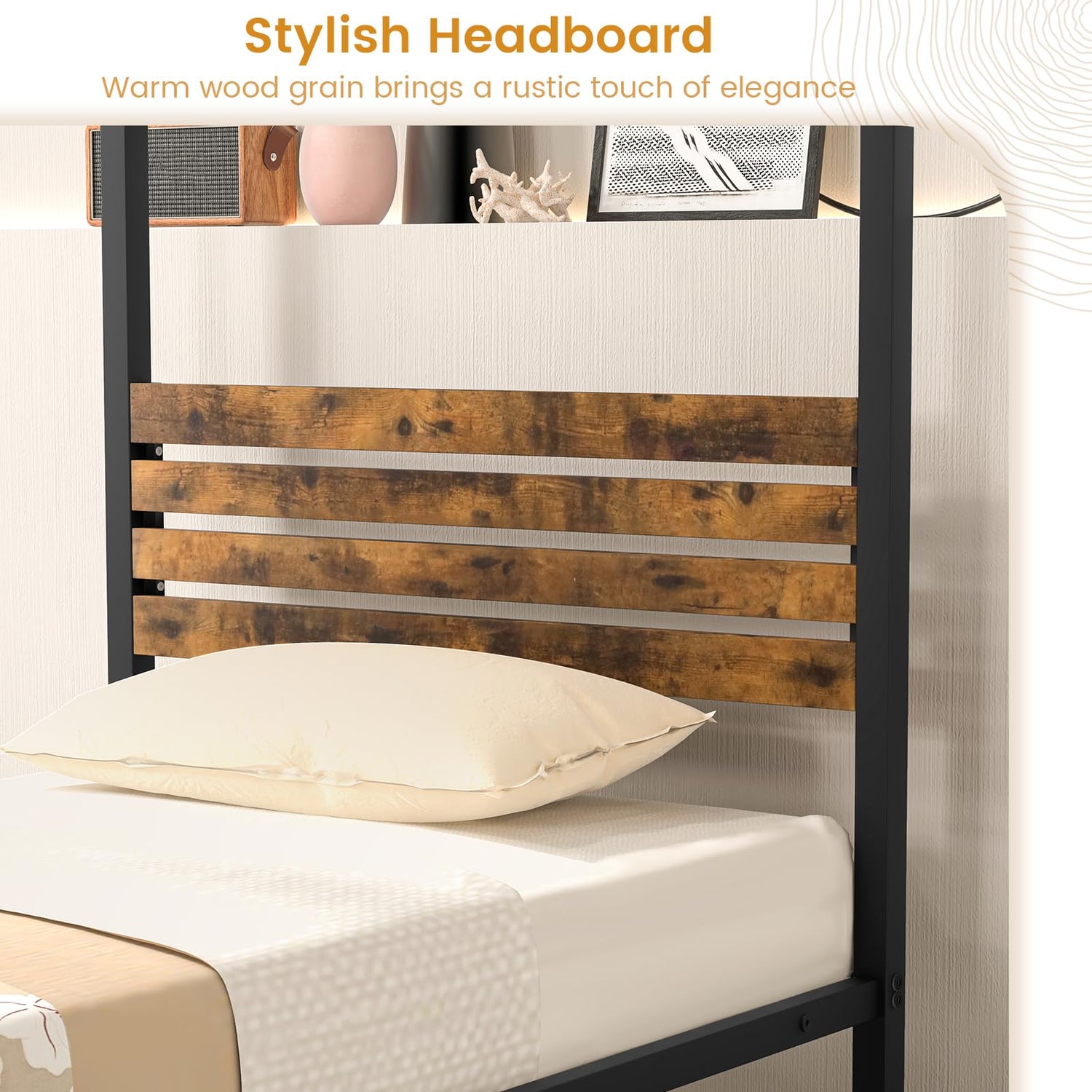 With a rustic headboard to enhance the overall appeal