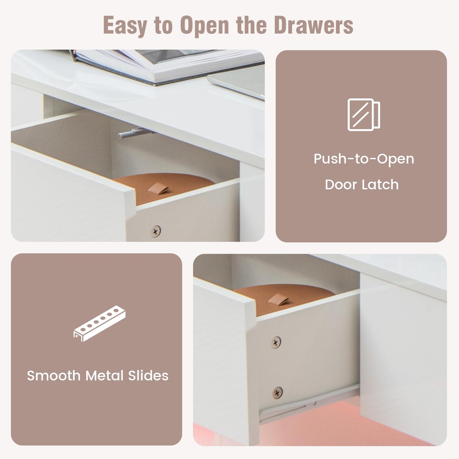 - Humanized Design: It is easy to open the drawers with push-to-open door latch and smooth metal slides, which give the accent table a simplistic handle-less look. The durable finish is waterproof, making the tabletop easy to clean.