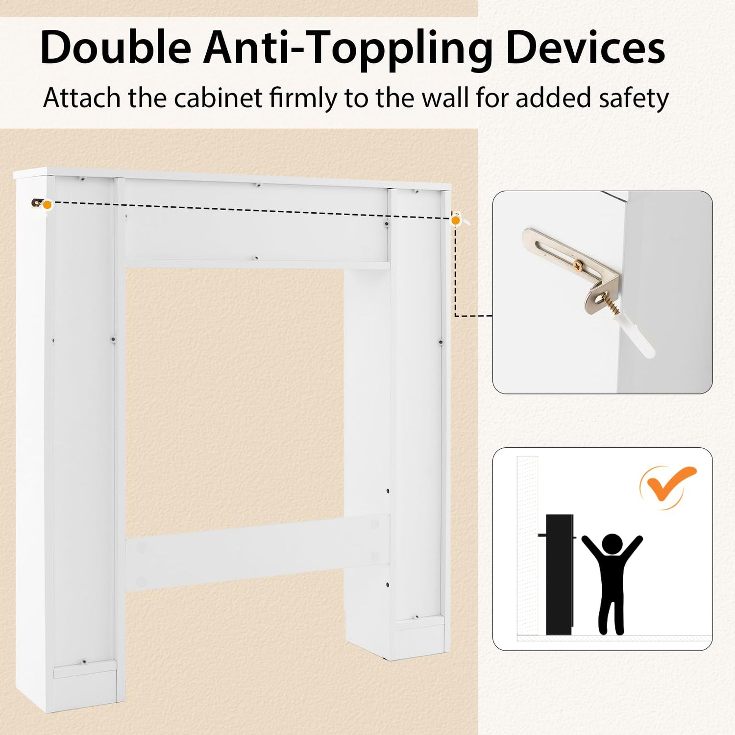 Designed with reliability and security in mind, this over-the-toilet storage cabinet is constructed from thick boards and includes anti-slip foot pads for enhanced stability. For added safety, it comes with double anti-toppling devices that securely attach the cabinet to the wall, preventing any accidents.