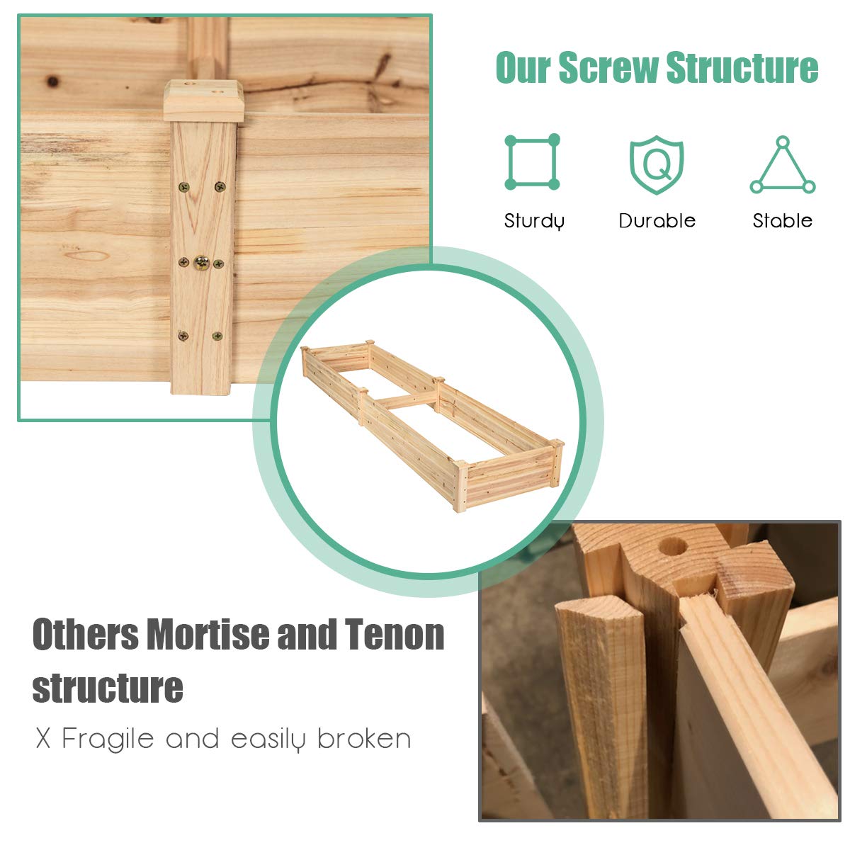 Giantex Raised Garden Bed Planter, Wooden Elevated Vegetable Planter Kit Box Grow for Patio Deck Balcony Outdoor Gardening, Natural