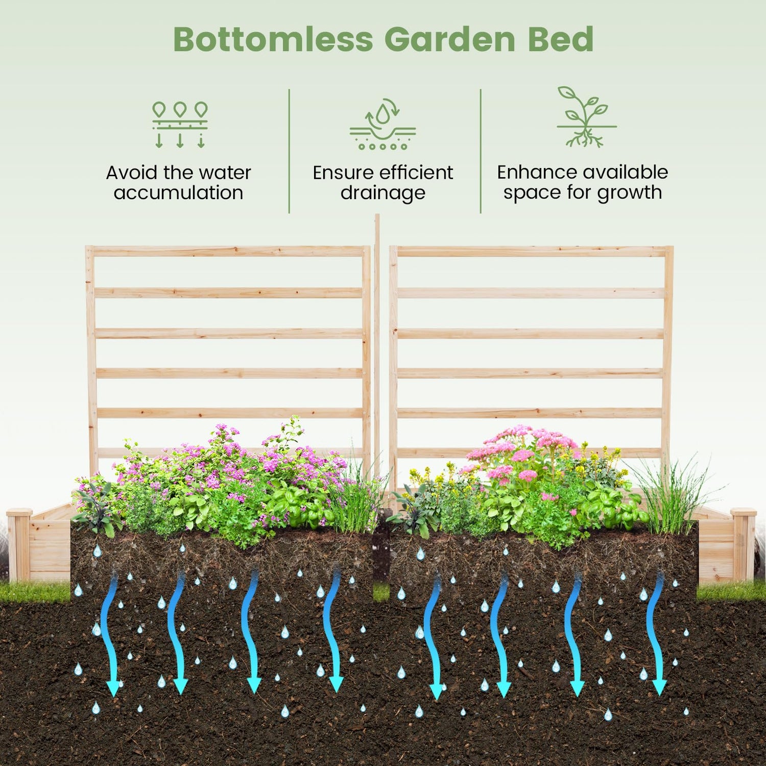 Giantex Raised Garden Bed with 3 Trellises, 88"L x 45"W x 43"H, Set of 2 Wood Planter Box for Vegetables Flowers Herbs Fruits Climbing Plants Cucumber, Easy Assembly, Outdoor Rectangular Raised Beds